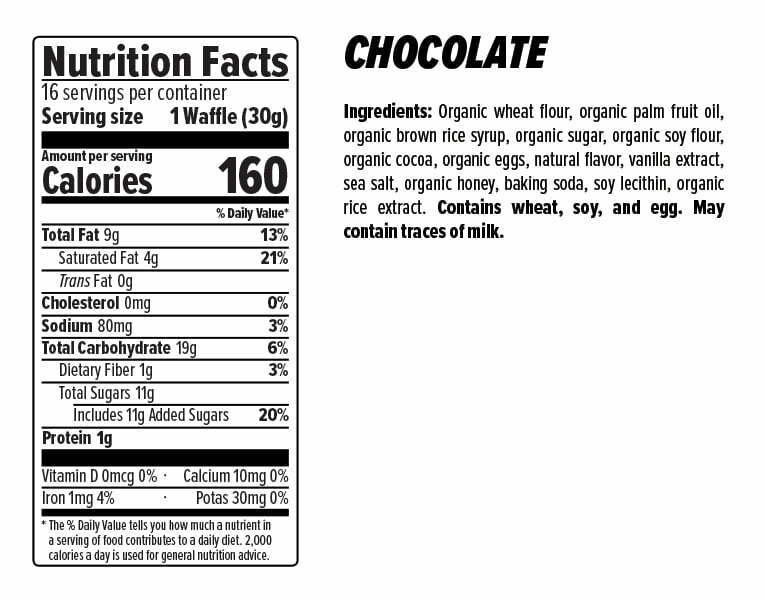 A thin layer of honey infused with natural cocoa flavor and sandwiched between two thin waffles. The delicious taste of chocolate and honey will satisfy your taste buds and keep you going as an afternoon snack, during your favorite activity or go great with your cup of coffee or tea. THE ORIGINAL ENERGY WAFFLE For years, similar waffles have been sold on street corners throughout Europe and eaten by professional cyclists, so we decided to create our own by sandwiching honey between two thin waffles. Honey Stinger Organic Waffles are easy to digest, certified organic and available in a single-serving wrapper. 160 Calories 0% Trans Fat 0% Cholesterol