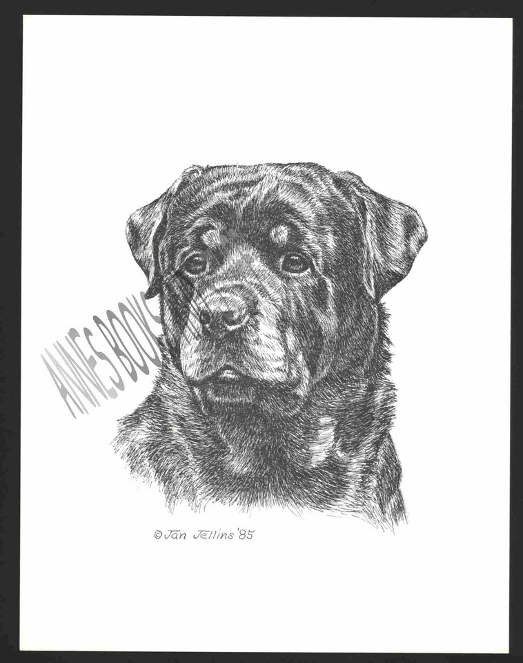 #357 ROTTWEILER portrait dog art print Pen & ink drawing * Jan Jellins