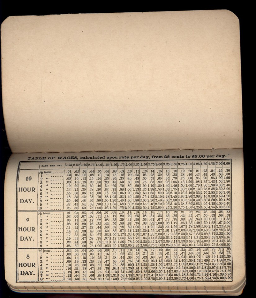 WORKMANS weekly 592-1/4 TIME BOOK not used with TABLE of WAGES Daily or Weekly