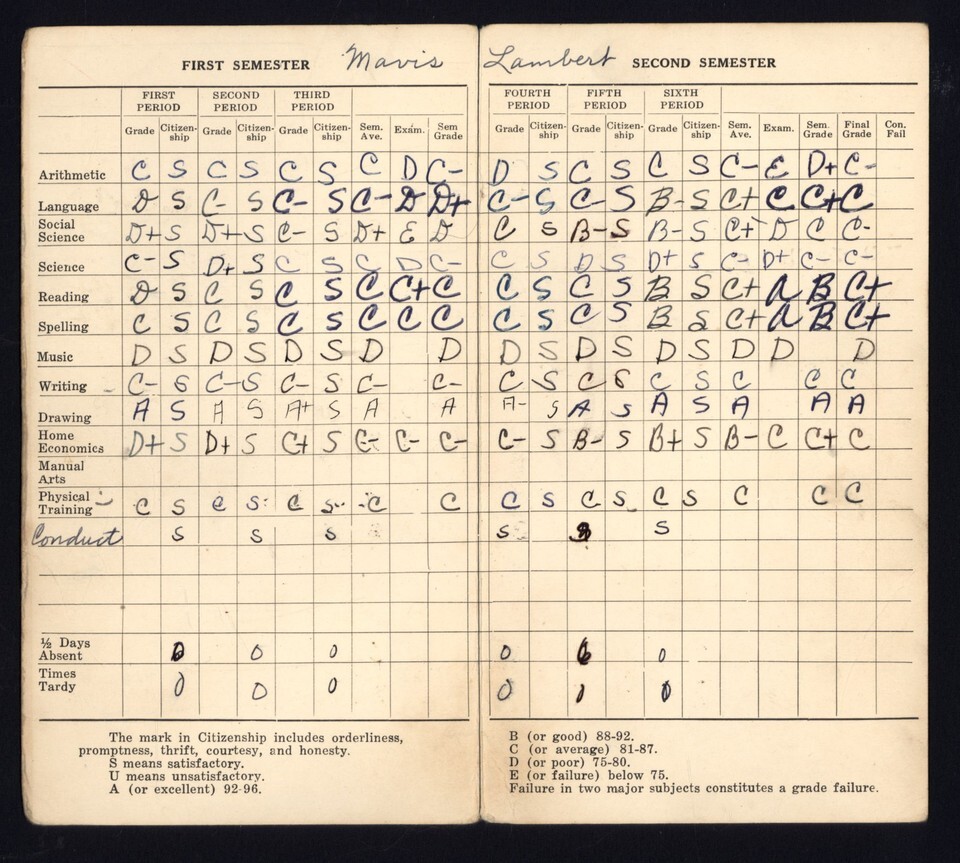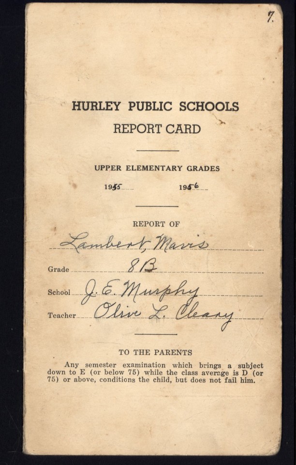 HURLEY PUBLIC SCHOOLS report card 1955/56 * Grade 8b - Mavis Lambert