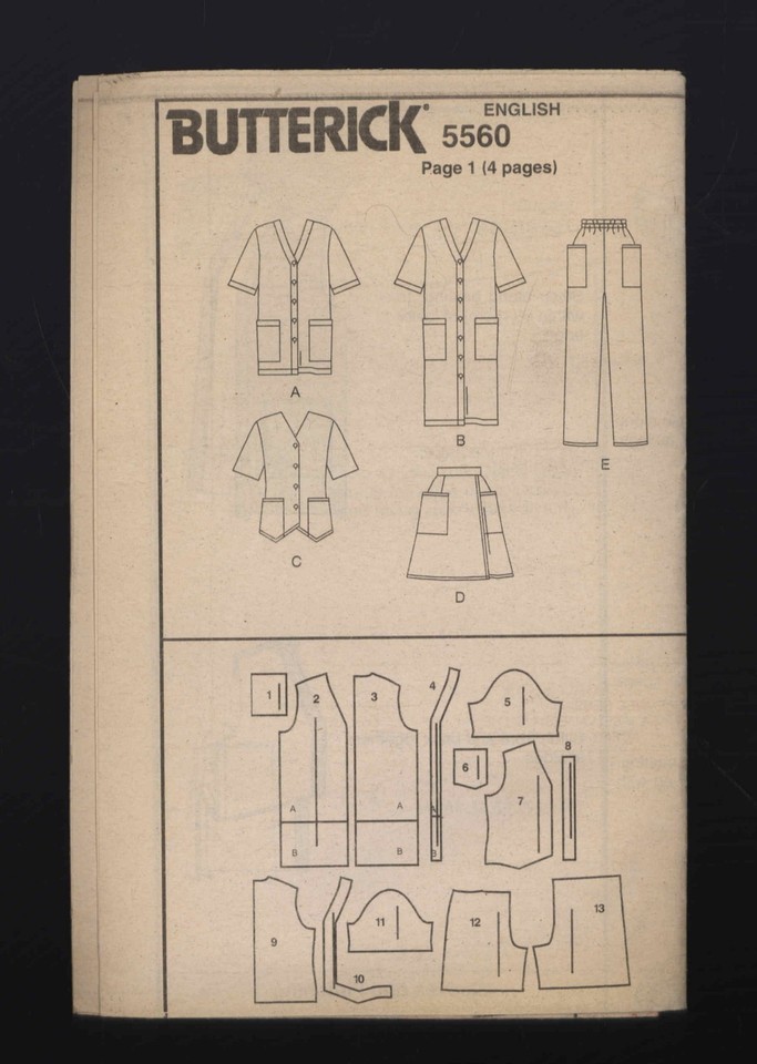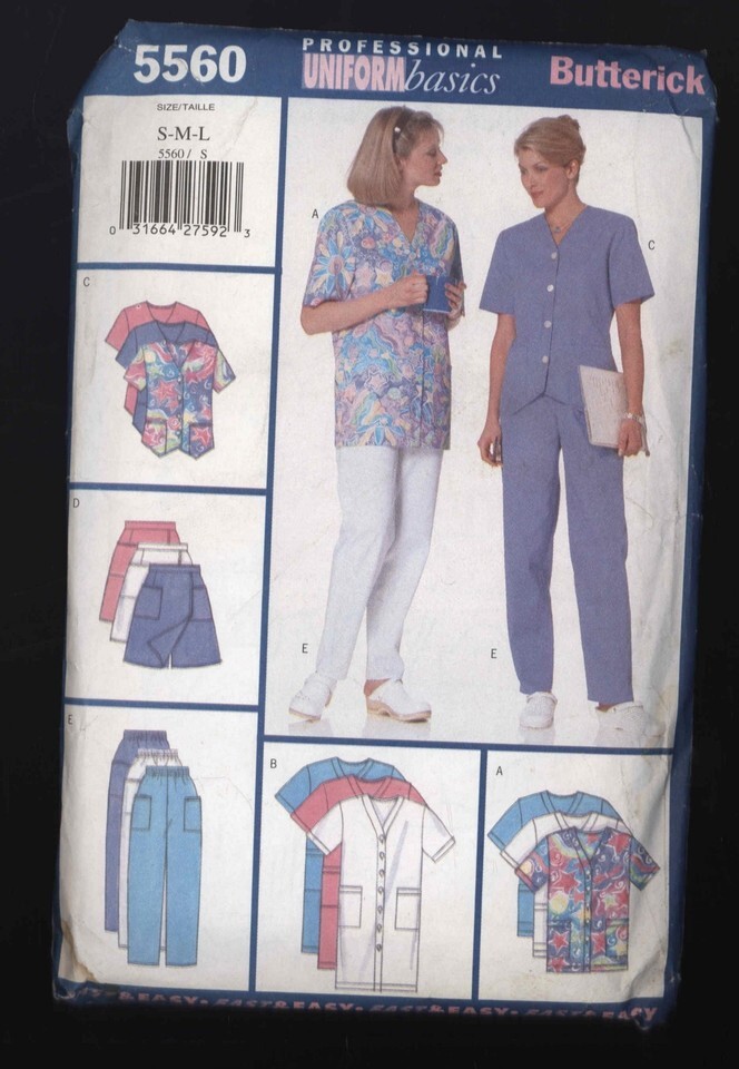 BUTTERICK 5560 - PROFESSIONAL UNIFORM BASICS S-M-L Dress Top Skort Parts