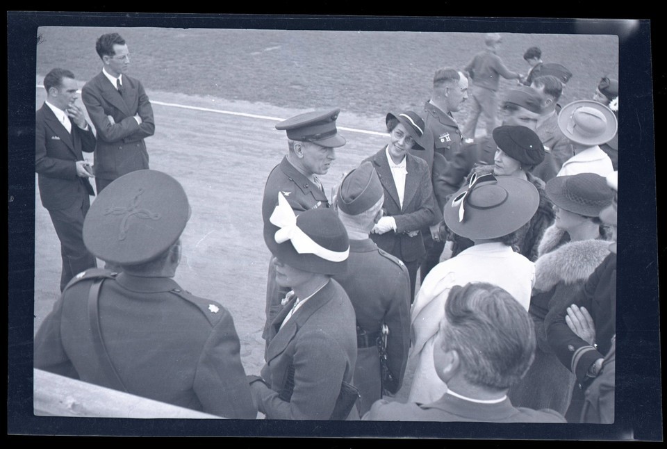 BLACK & WHITE NEGATIVE * People man wearing uniforms women hats