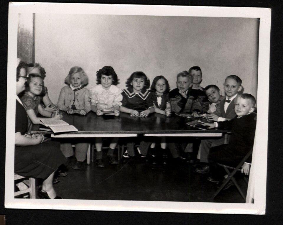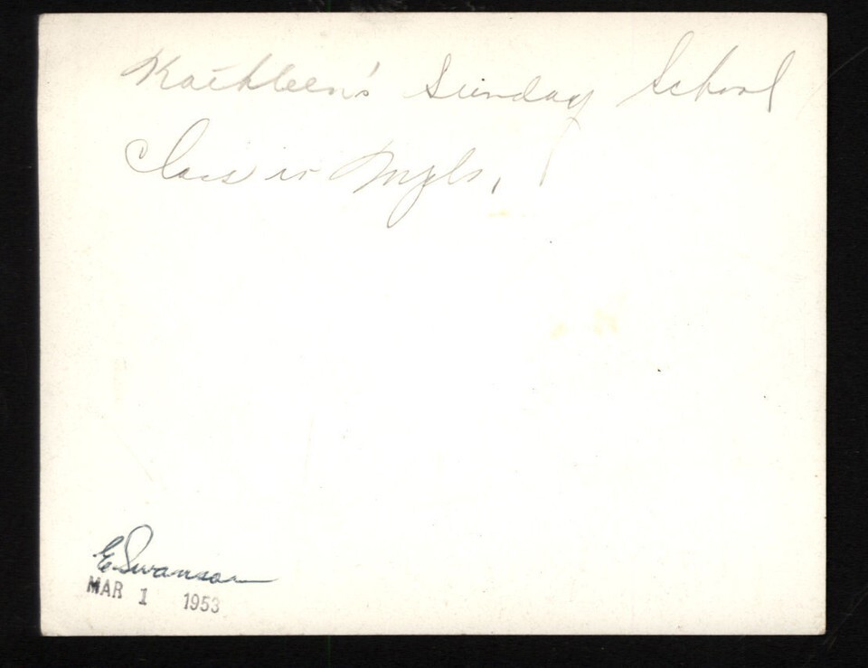 from Album *1953 E. Swanson Kathleen at Sunday School * Group photo Kids Teacher