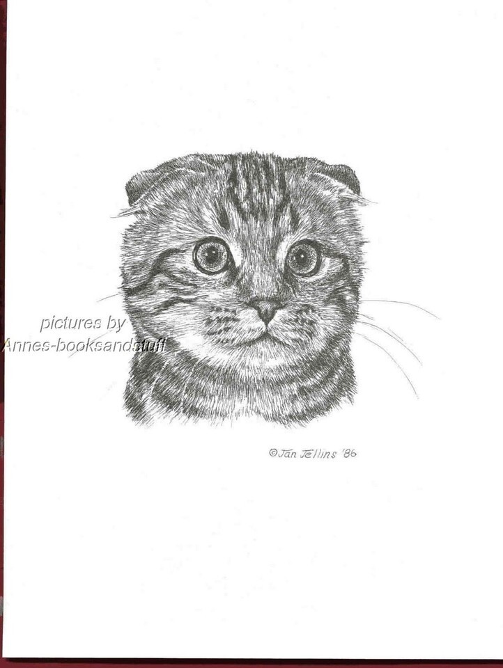 #392 SCOTTISH FOLD CAT PORTRAIT art print * pen & ink drawing by Jan Jellins
