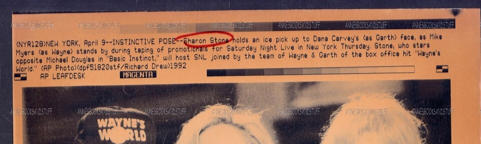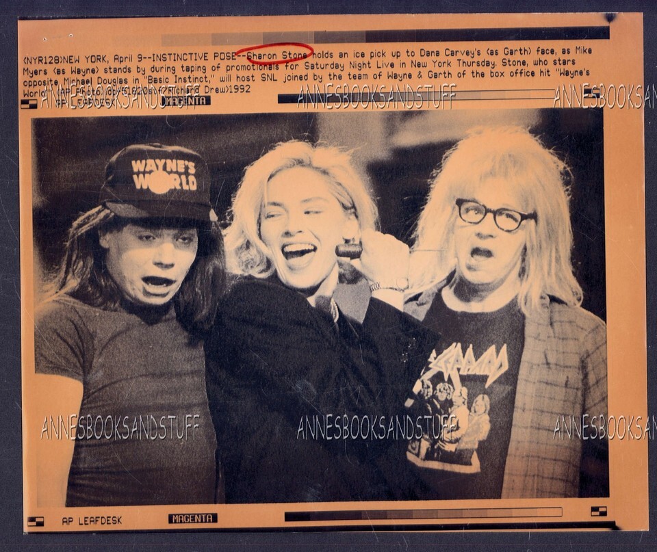 AP LEAFDESK Press Photo SNL Sharon Stone, Wayne's World Dana Carvey & Mike Myers