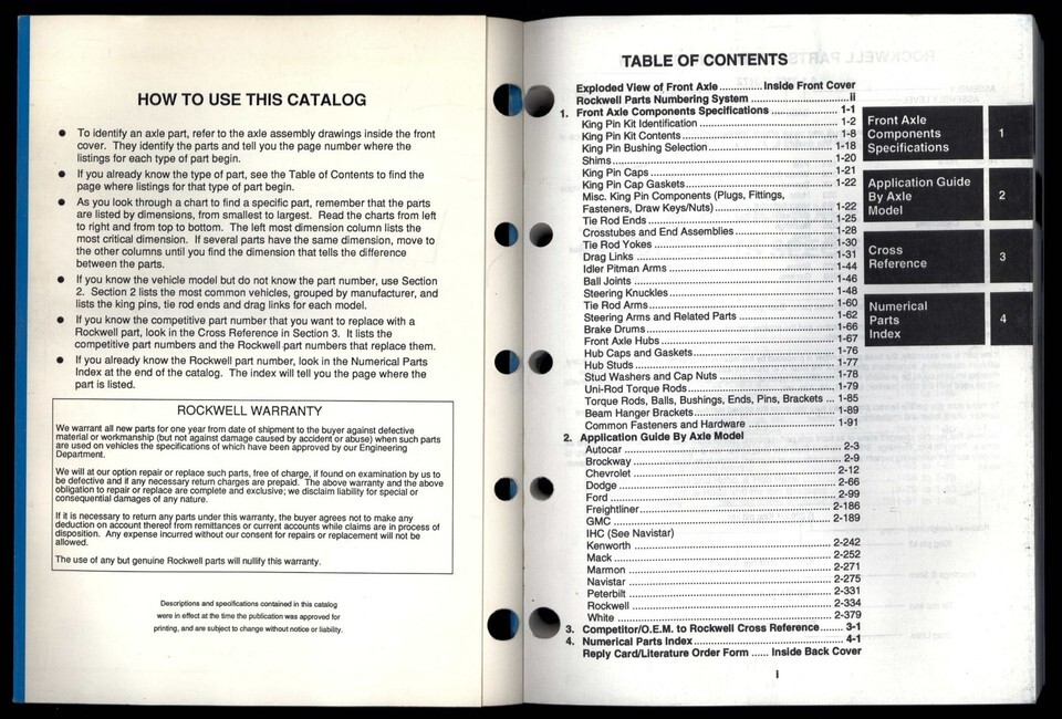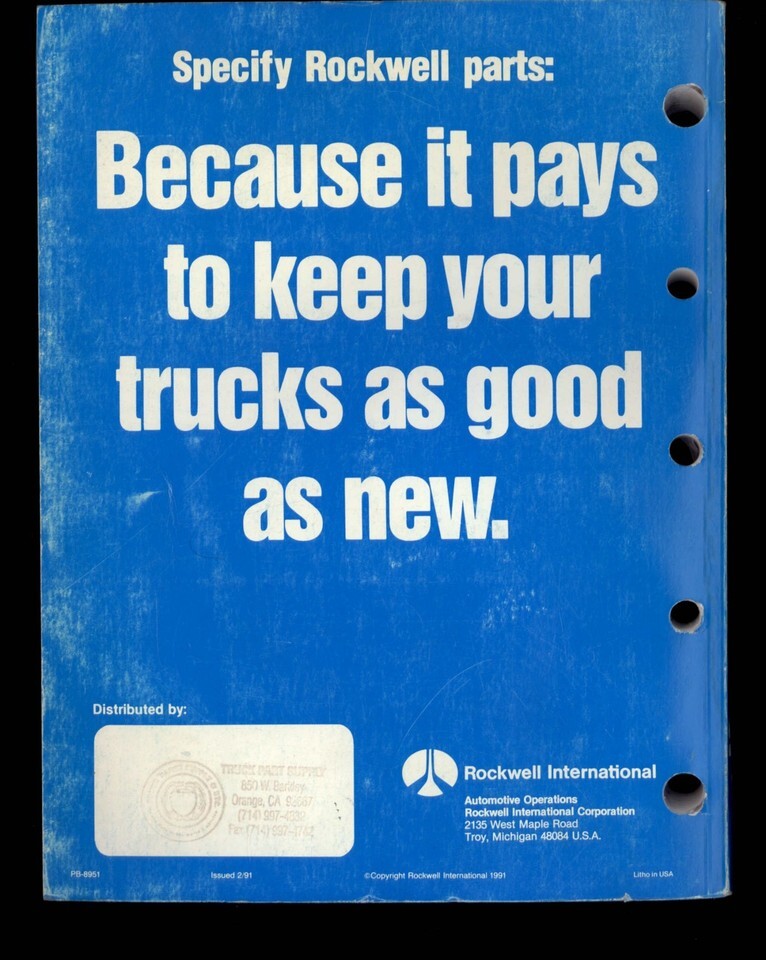 ROCKWELL FRONT AXLE PARTS - PB-8951 revised 1991 - Medium & Heavy TRUCKS -Softco