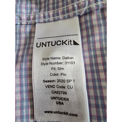 UNTUCKit Dalton Slim Fit Performance Shirt Mens Large Pink Blue Check 31101