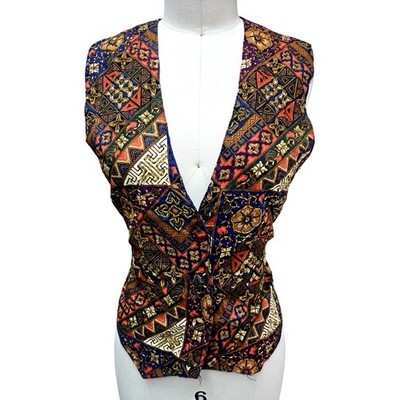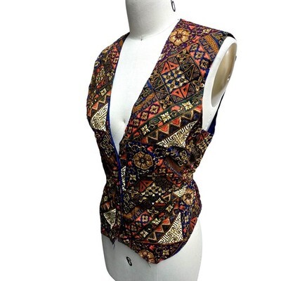 VTG 1990s Halsey Collection Beaded Cotton Vest Boho Festival Artisan M