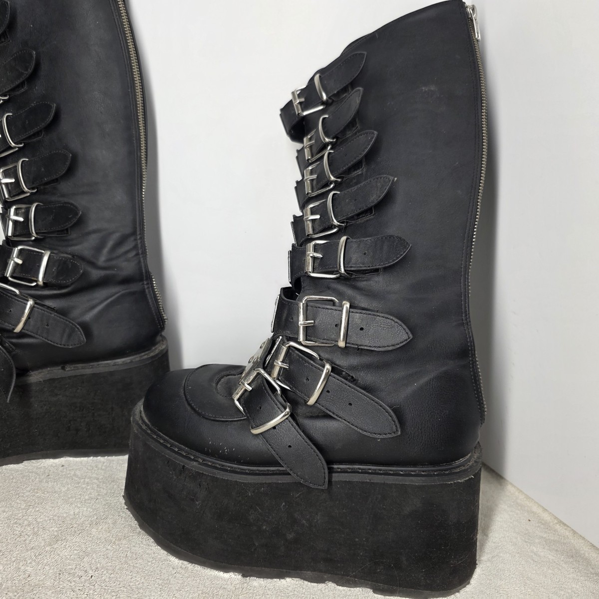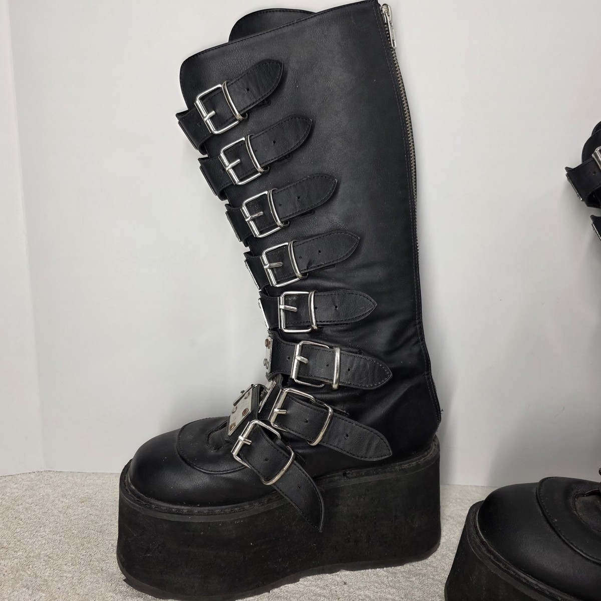 DEMONIA DAMNED 318 Punk Gothic Black Platform Buckles Women's Knee Boots