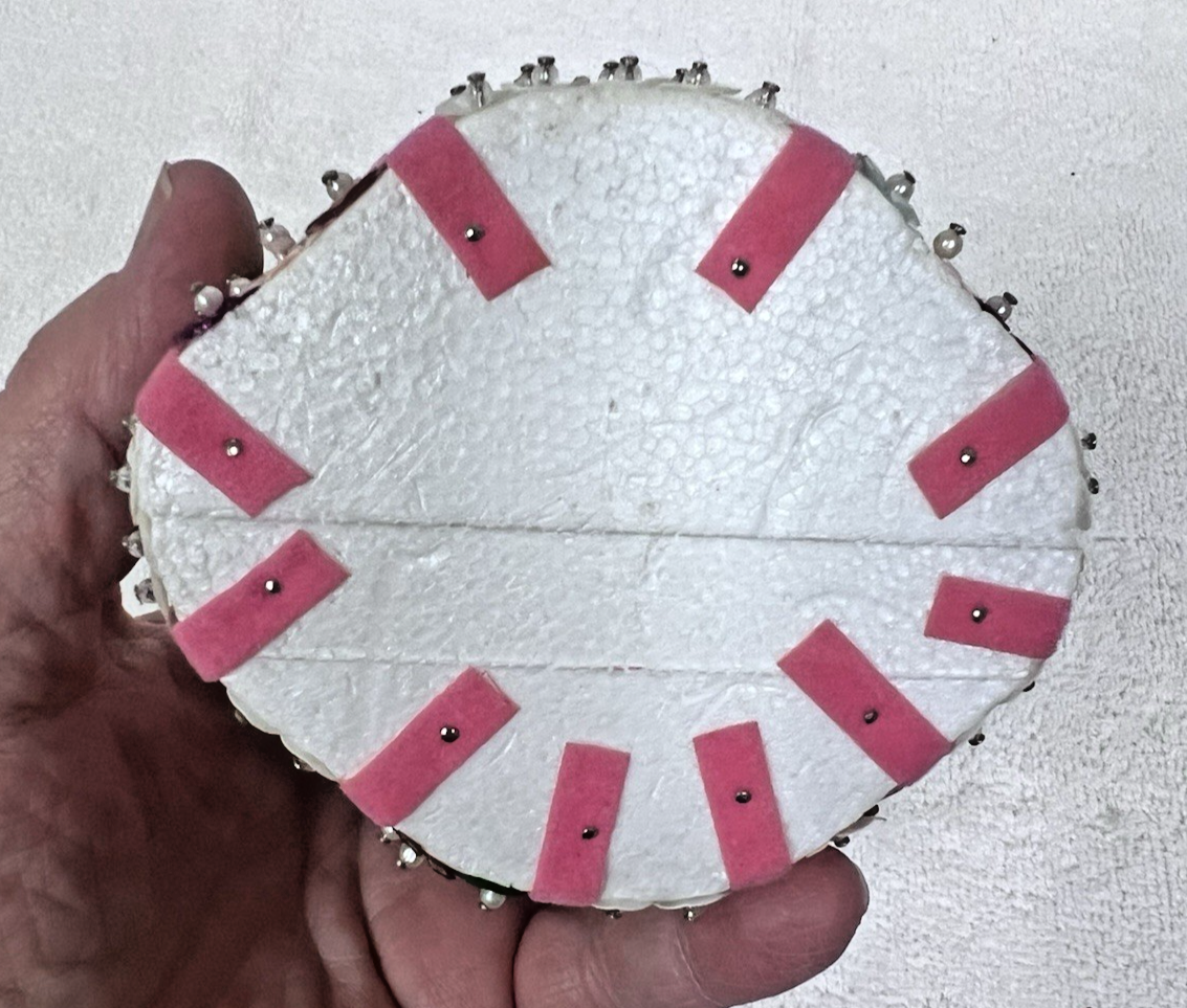 Vintage Doll Beaded Sequin Push Pin Brunette Flowers PINK 5"
