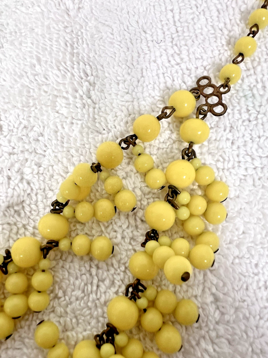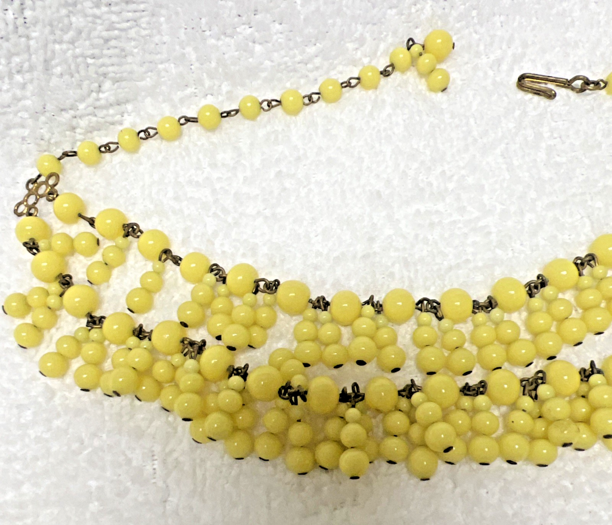 Vintage Glass Soft Buttery Yellow Hand Beaded Necklace w Dangles 2 Rows Fun