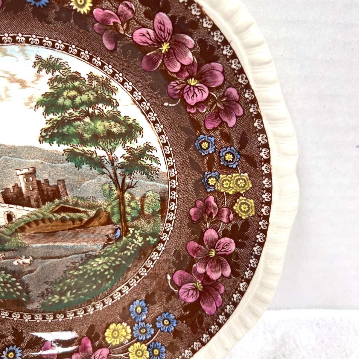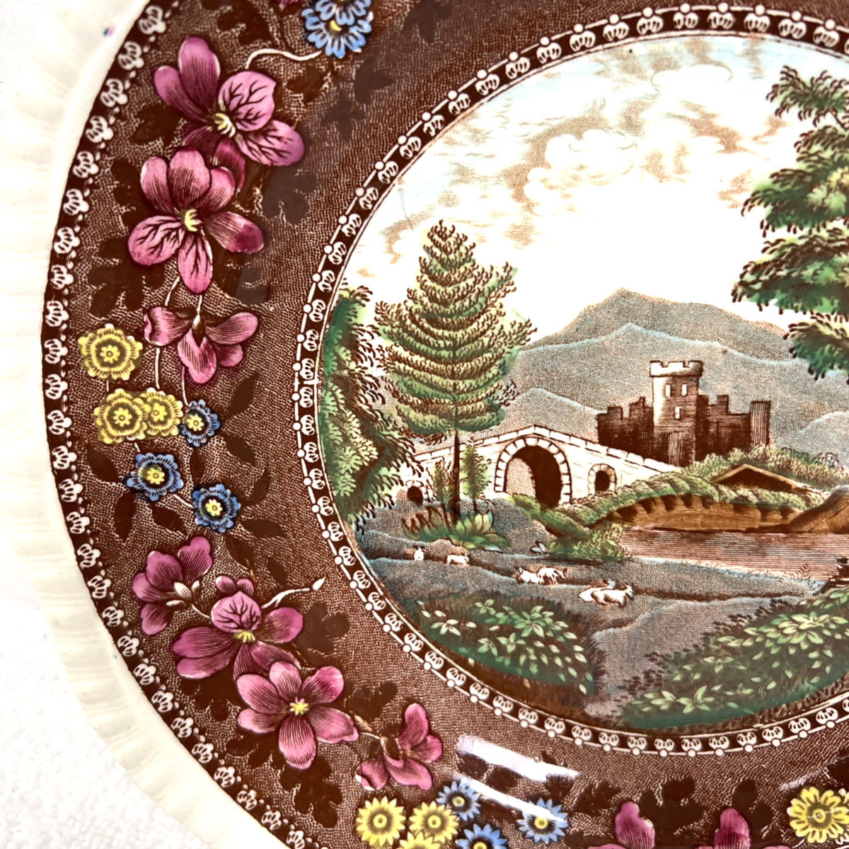 Antique Delft Copeland Spode Polychrome Ostemouth Lunch Plate 9 1/4" Wide. Pretty medieval scene tower, bridge pastoral on this polychrome dinner plate that measures approx 9 1/4"" wide, no damage, very nice used condition, minimals signs of use, coloring intact bright, old printed marking on bottom. See pictures.