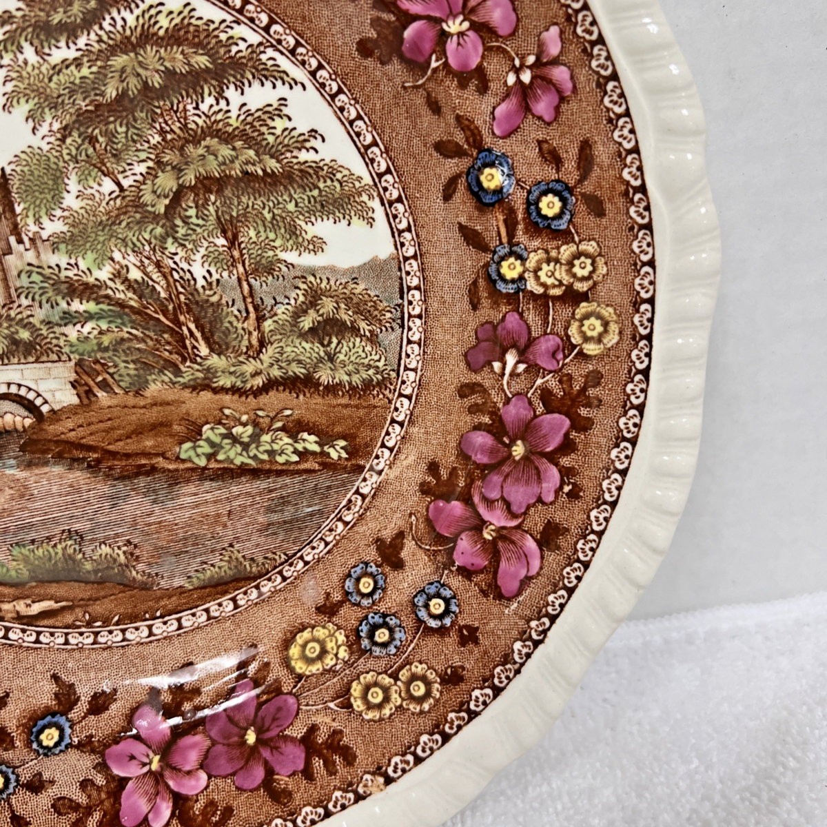 Antique Delft Copeland Spode Polychrome Nottar Bridge Lunch Plate 9 1/4" Wide