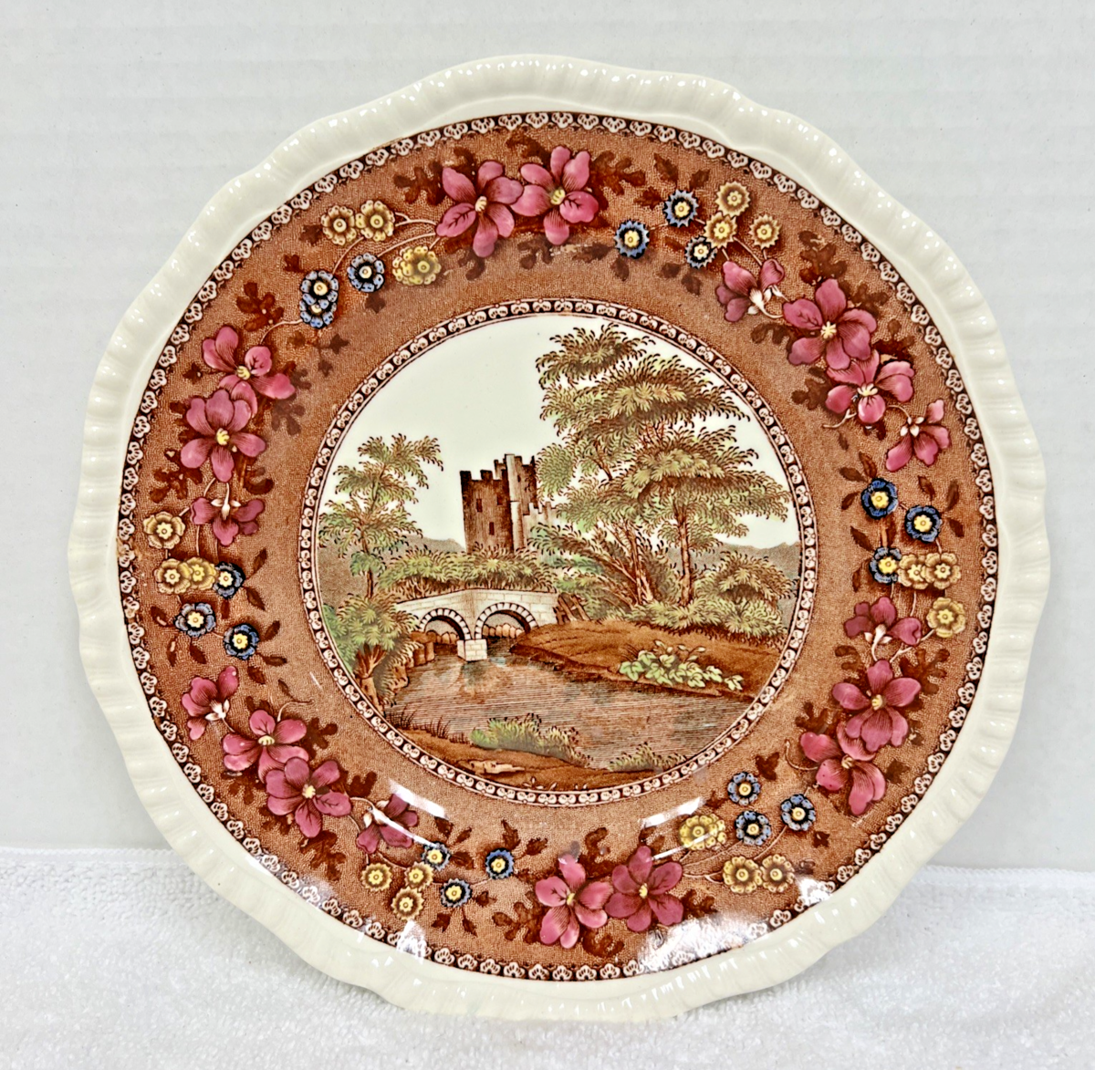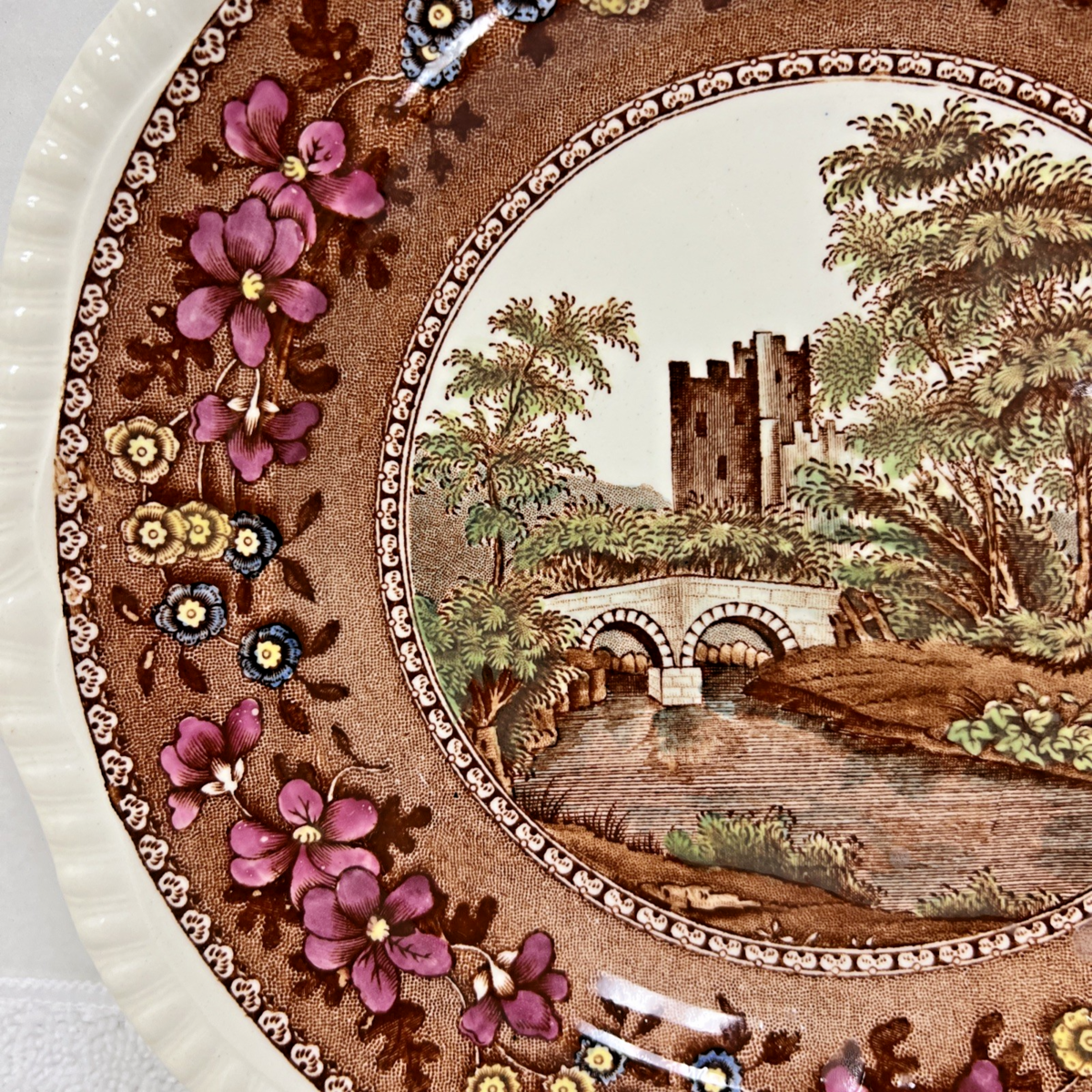 Antique Delft Copeland Spode Polychrome Nottar Bridge Lunch Plate 9 1/4" Wide. Pretty medieval scene castle bridge on this polychrome dinner plate that measures approx 9 1/4"" wide, no damage, very nice condition, no signs of use I find if any minimal, coloring intact bright, old printed marking on bottom. See pictures.