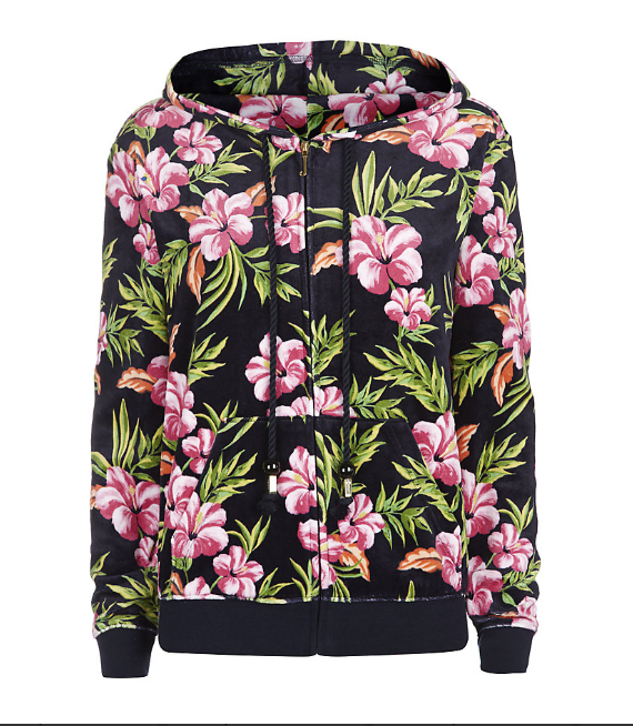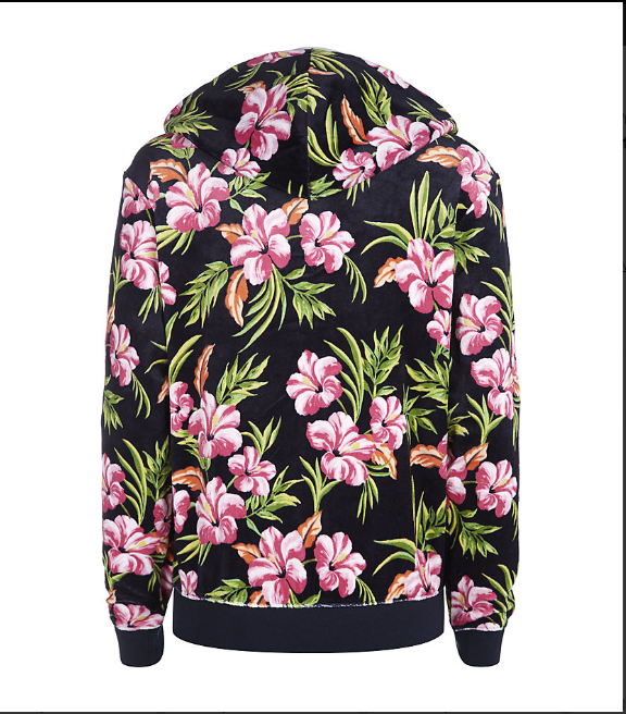 Y2K Juicy Couture retro Women's Hibiscus Tropical Print velour Hoody Small rare