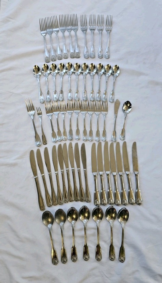 Vintage Towle Boston+mix Shell Silverplate Flatware Soup Spoon Set 57 Pc