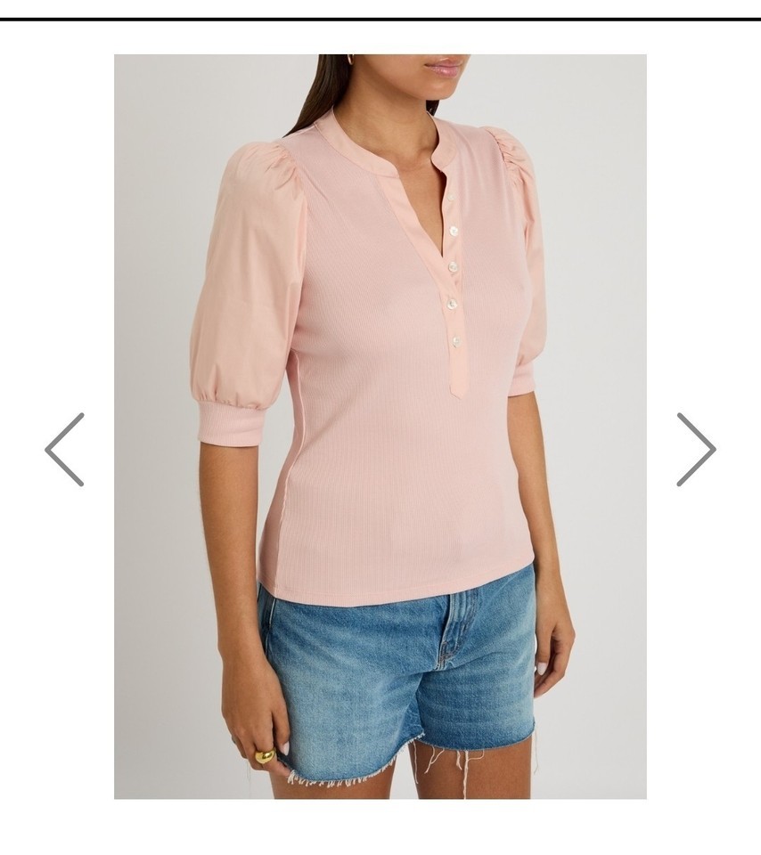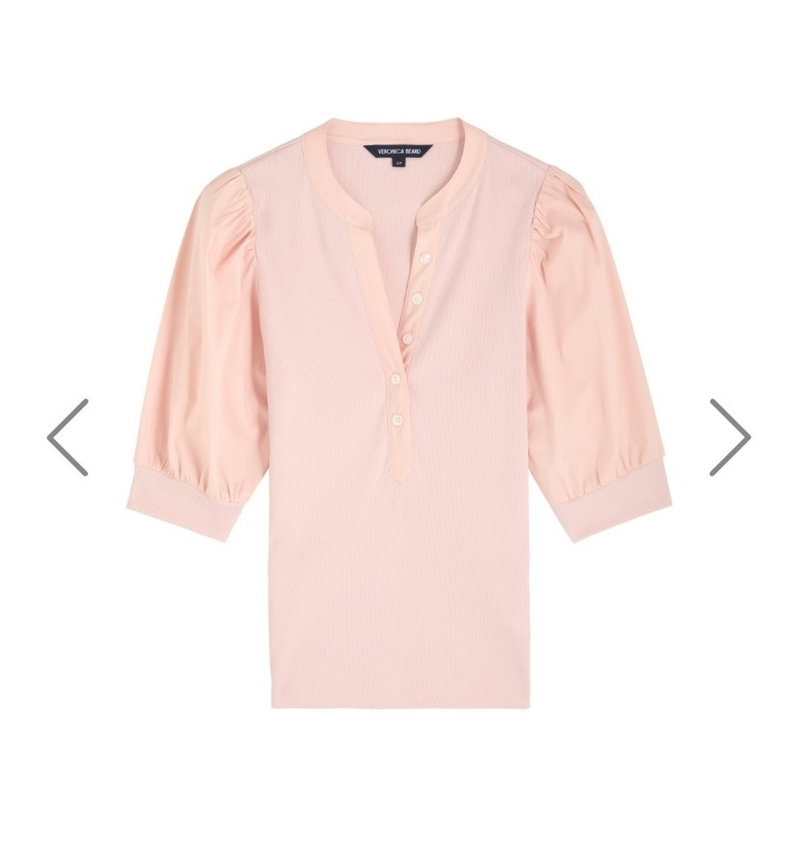 Veronica Beard Coralee High Volume Poplin Puff Sleeve Top Pink Size M