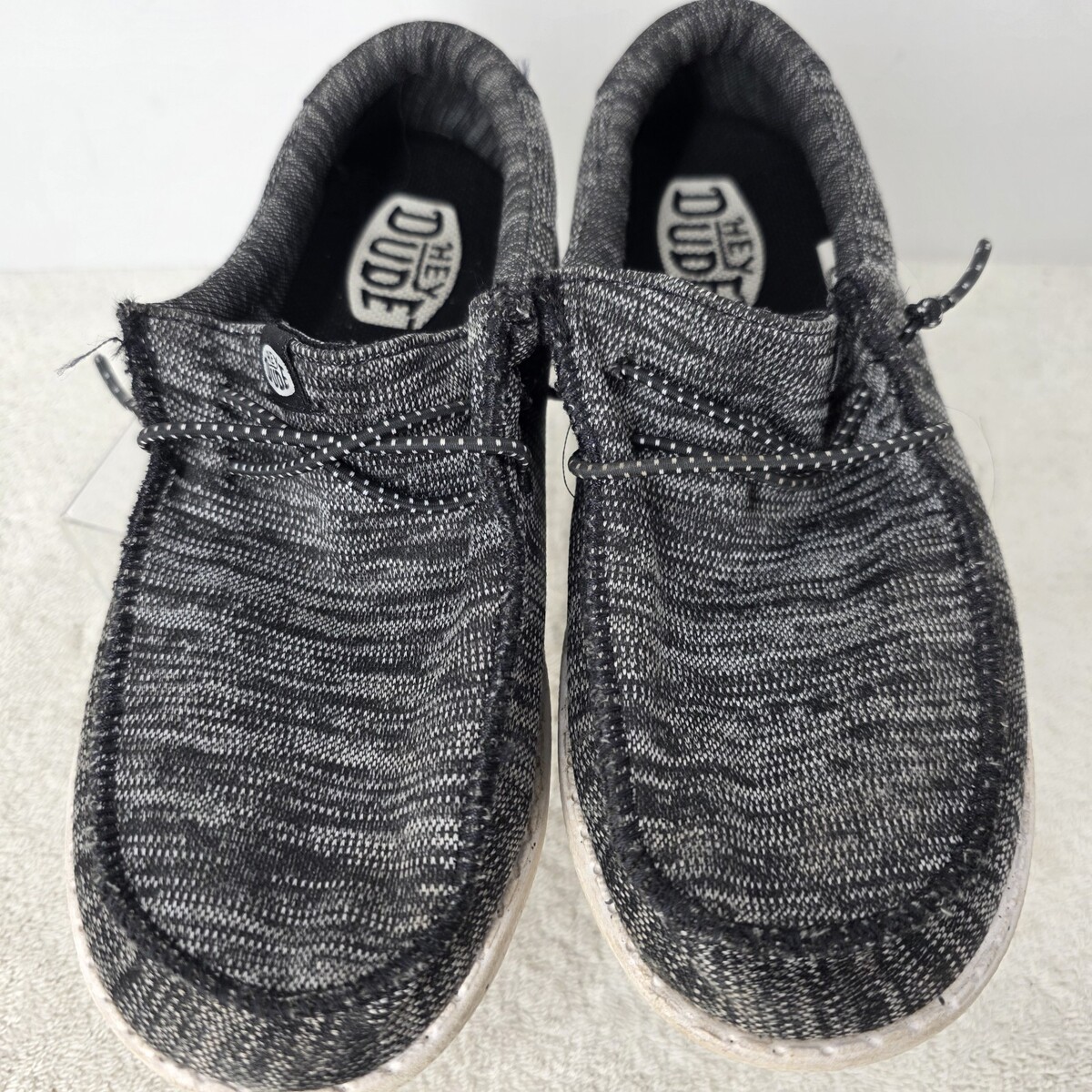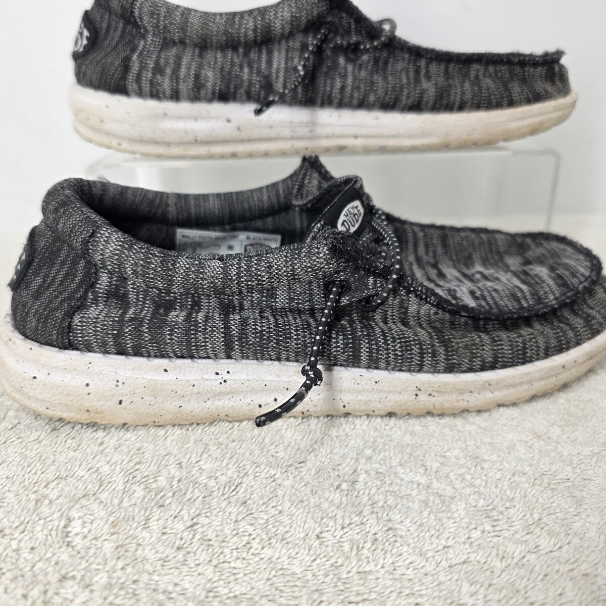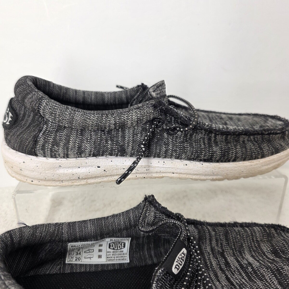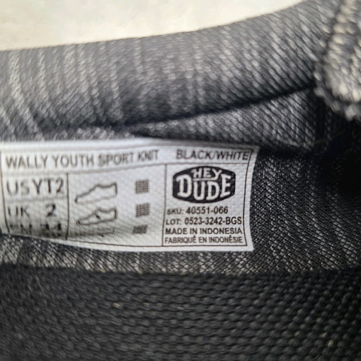 Hey Dude Youth SIZE 2Y Wally Sport Knit Black White Tweed Slip On Sneakers