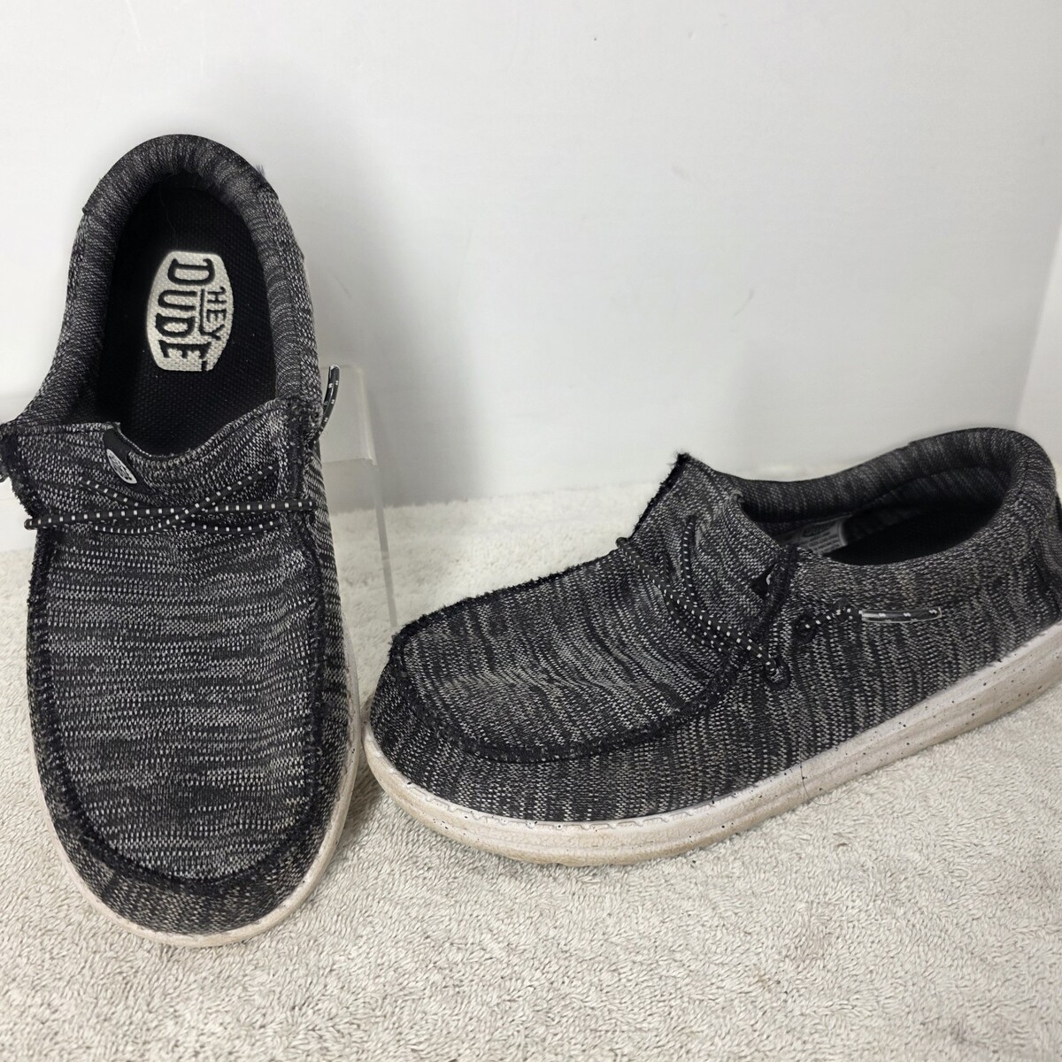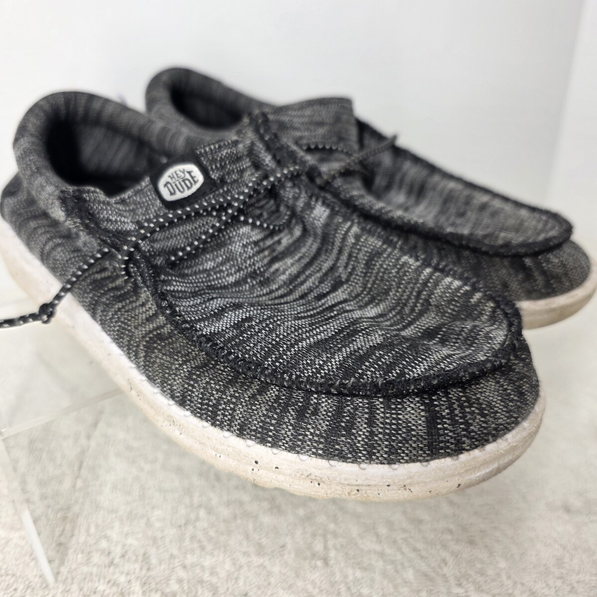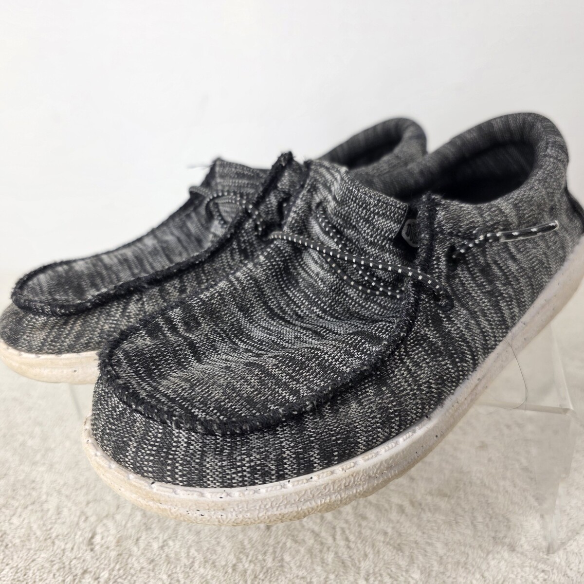 Hey Dude Youth SIZE 2Y Wally Sport Knit Black White Tweed Slip On Sneakers
