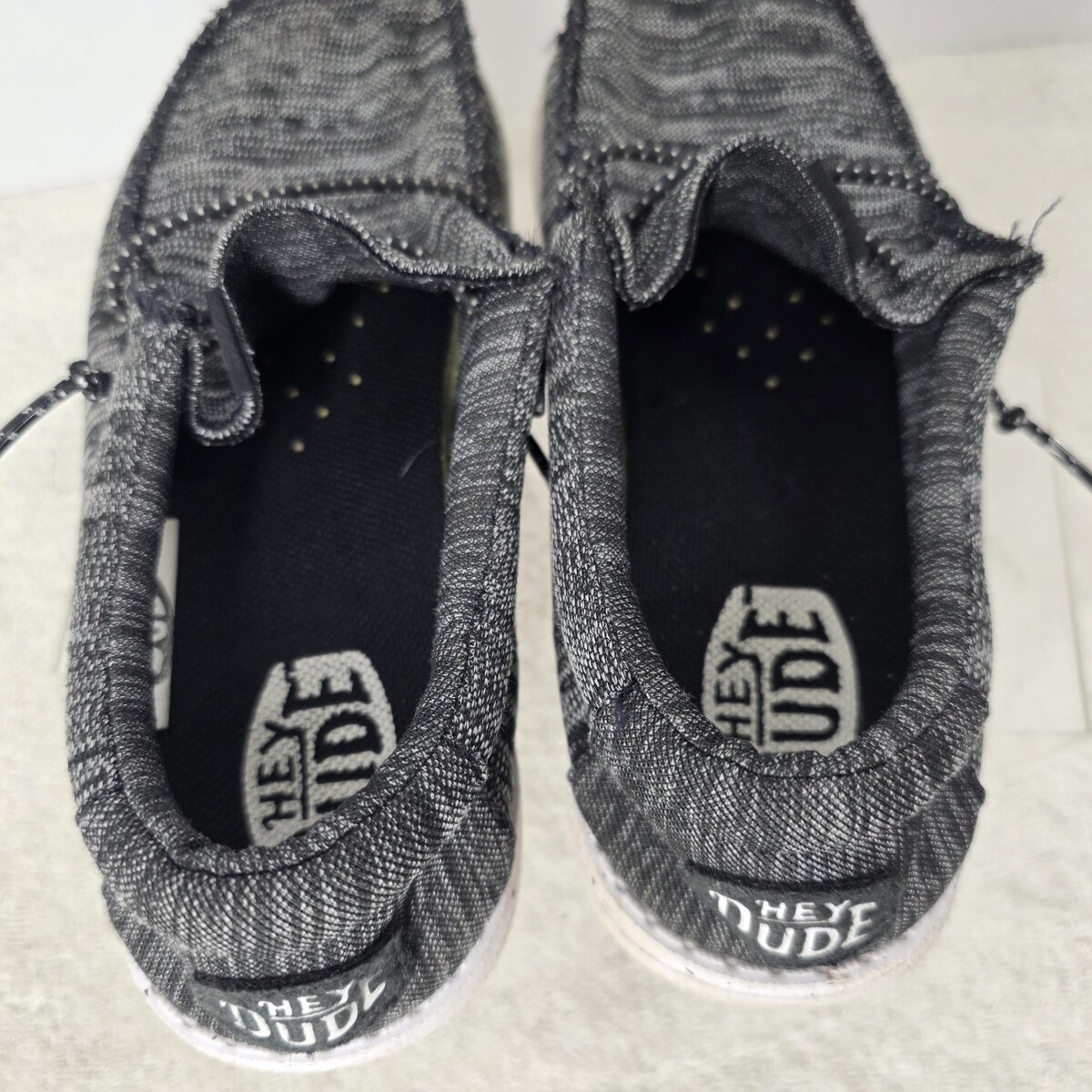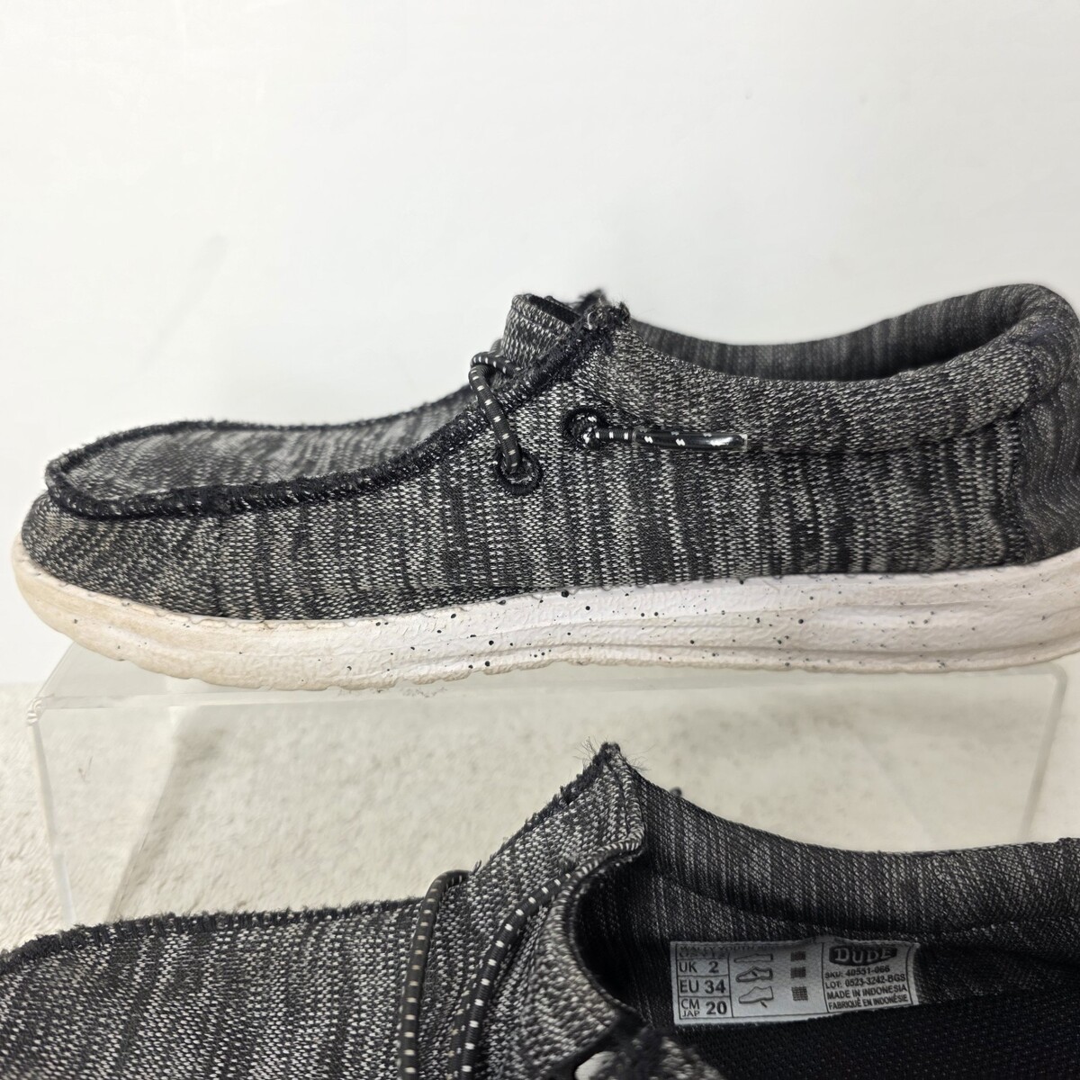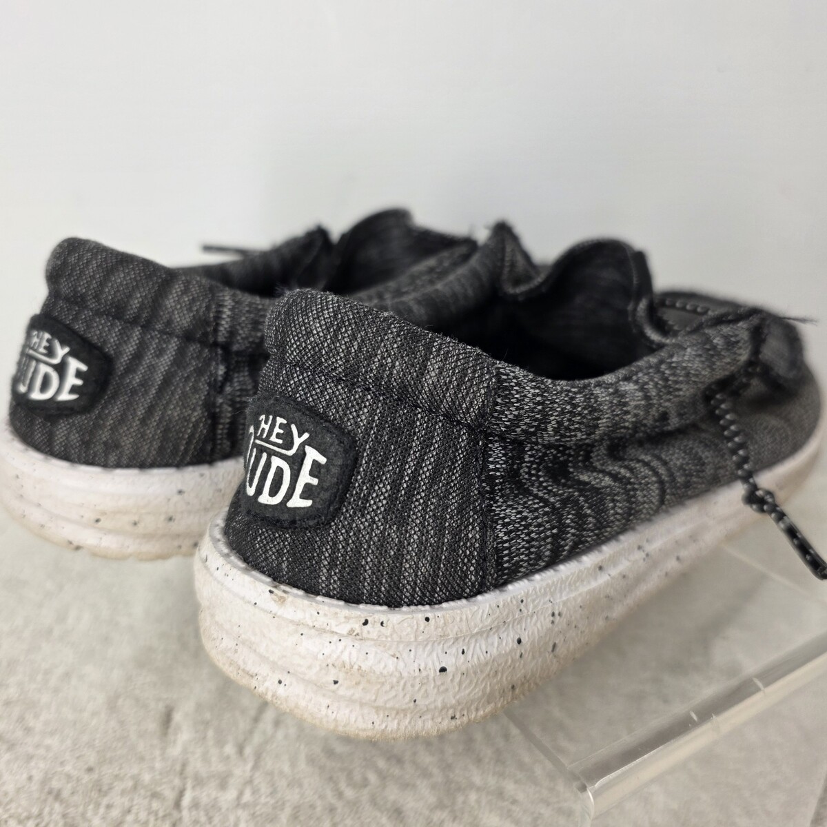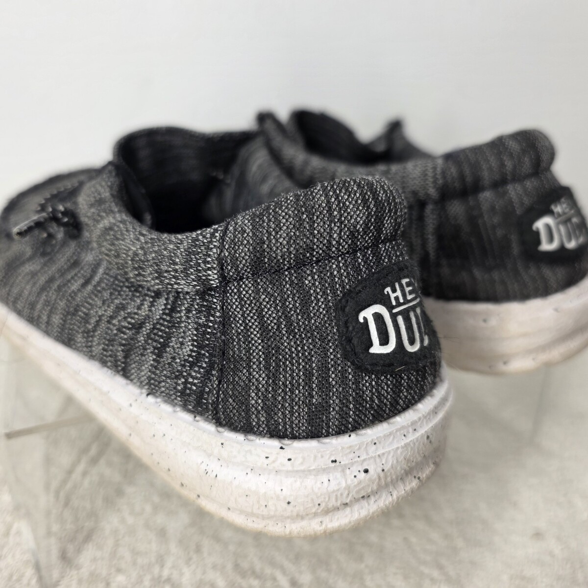 Hey Dude Youth SIZE 2Y Wally Sport Knit Black White Tweed Slip On Sneakers
