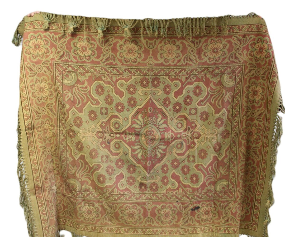 Vintage Table Cover Arts Crafts Era Muted Colors Red Green Attic Find