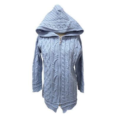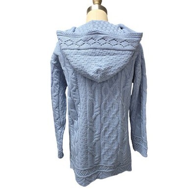Aran Crafts Ireland Merino Wool Zip Hoodie Coat Sky Blue XS NWOT