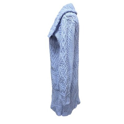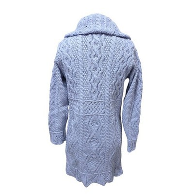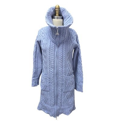 Aran Crafts Ireland Merino Wool Long Zip Cable Knit Coat Purple XS NWOT