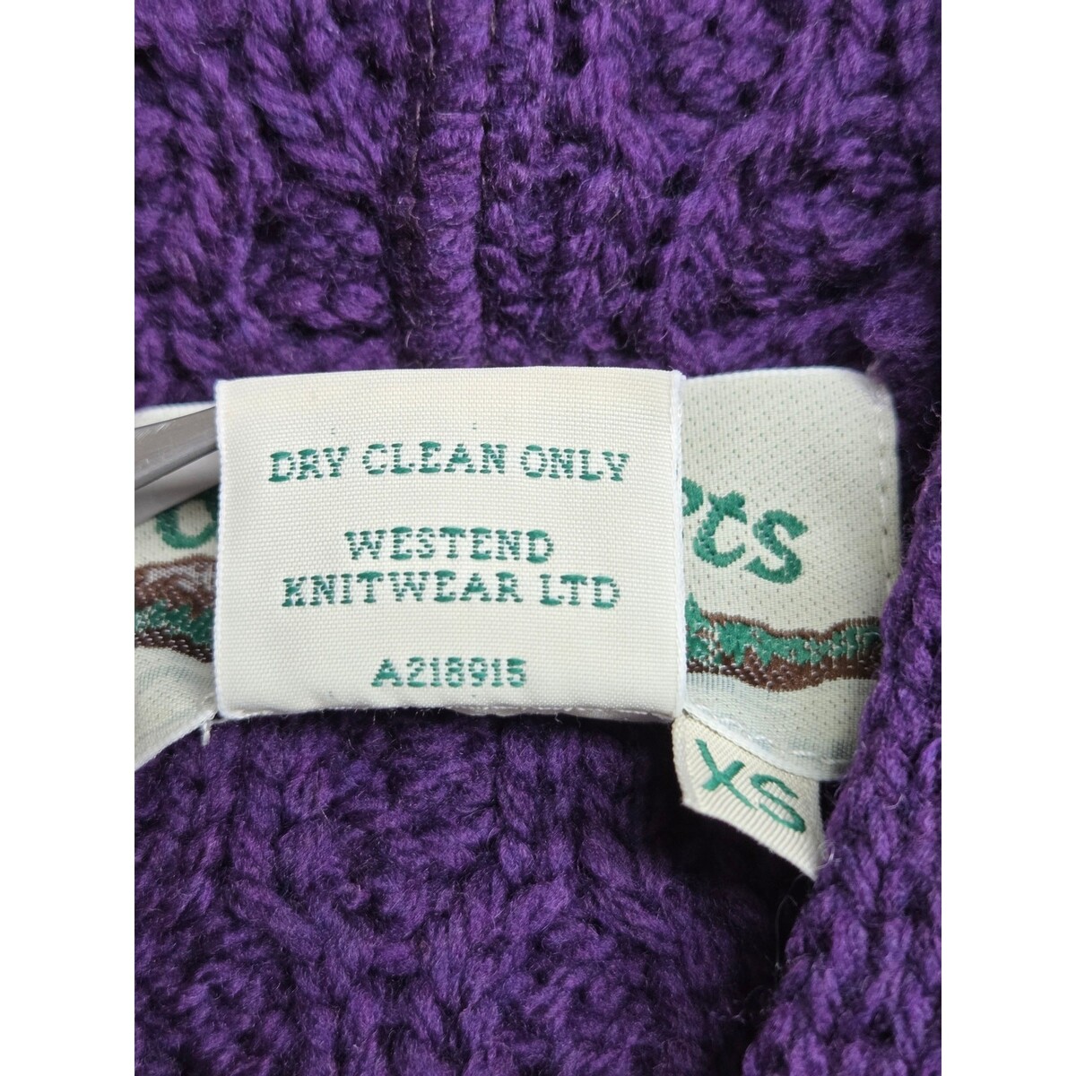 Aran Crafts Ireland Merino Wool Hooded Cable Knit Cardigan Purple XL NWOT