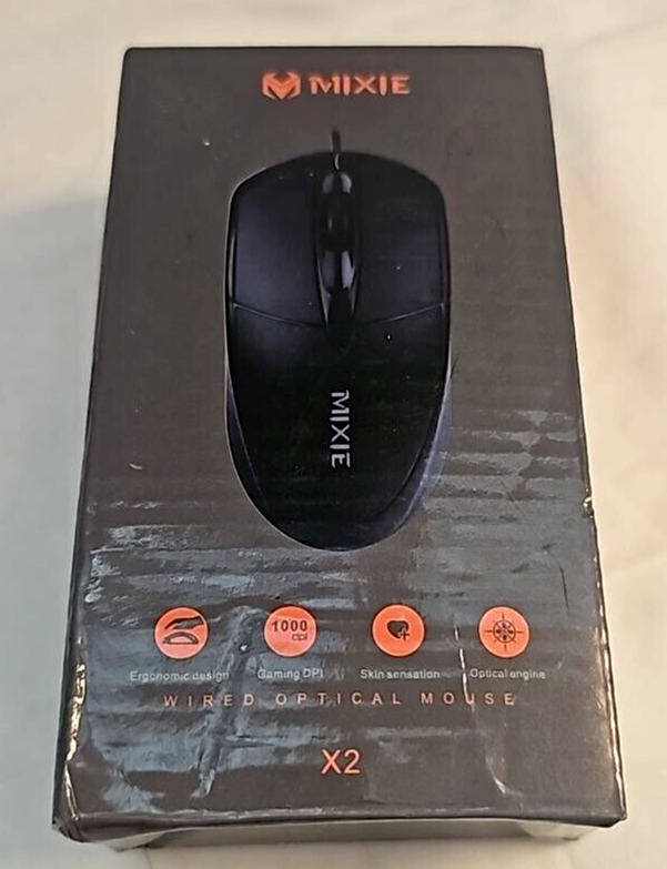 Mixie X2 Wired USB Ergonomic Optical Mouse 1200 DPI 3 Button PC Laptop Black
