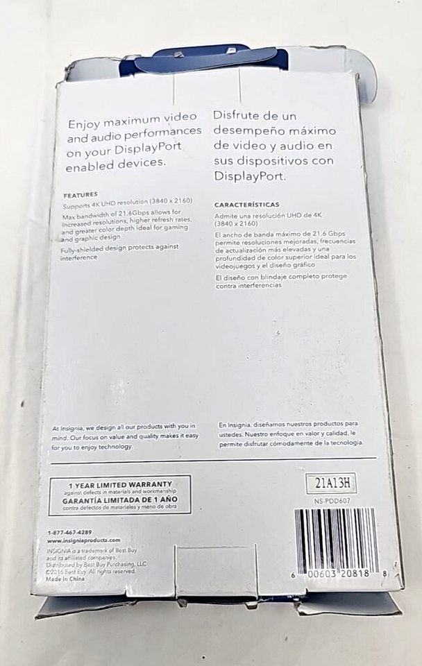 Insignia DisplayPort Cable 6FT 4K Ultra HD DP to DP Monitor Video Cable