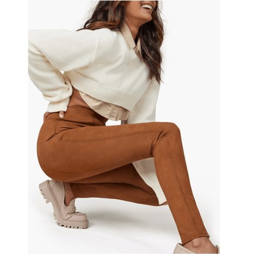 SPANX High Waist Faux Suede Leggings Pants, Brown Rich Carmel, Medium 6/8, NWT