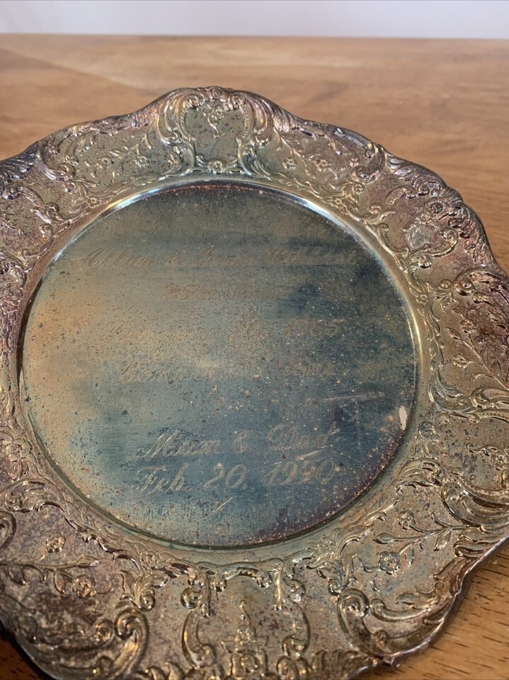 Sheridan Silversmith Taunton Plate Engraved Embossed Platter Trinket Tray Silver