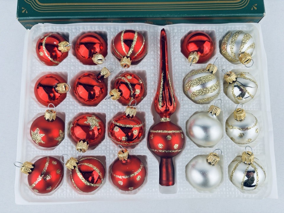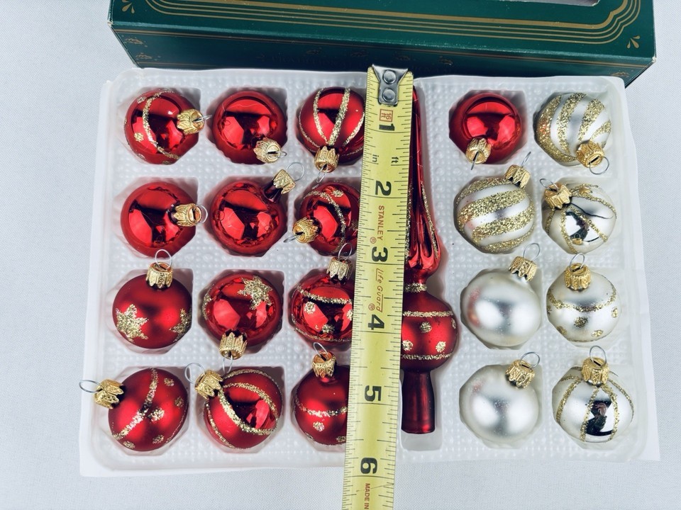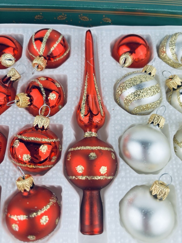 Kurt Adler Glass Ball Ornaments Finial Tree Topper Christmas Red White Gold