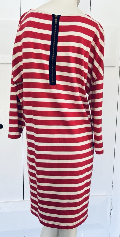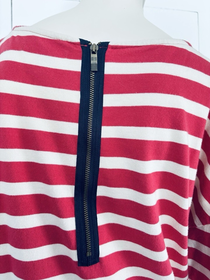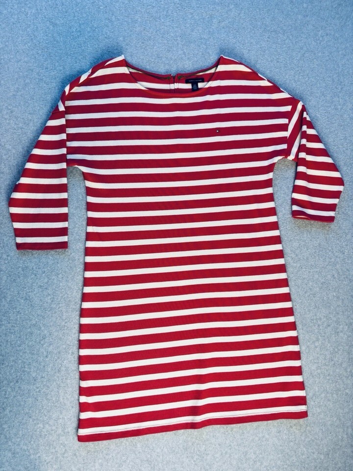 Tommy Hilfiger Striped Sweatshirt Dress Pink White Logo Women’s Large Cotton