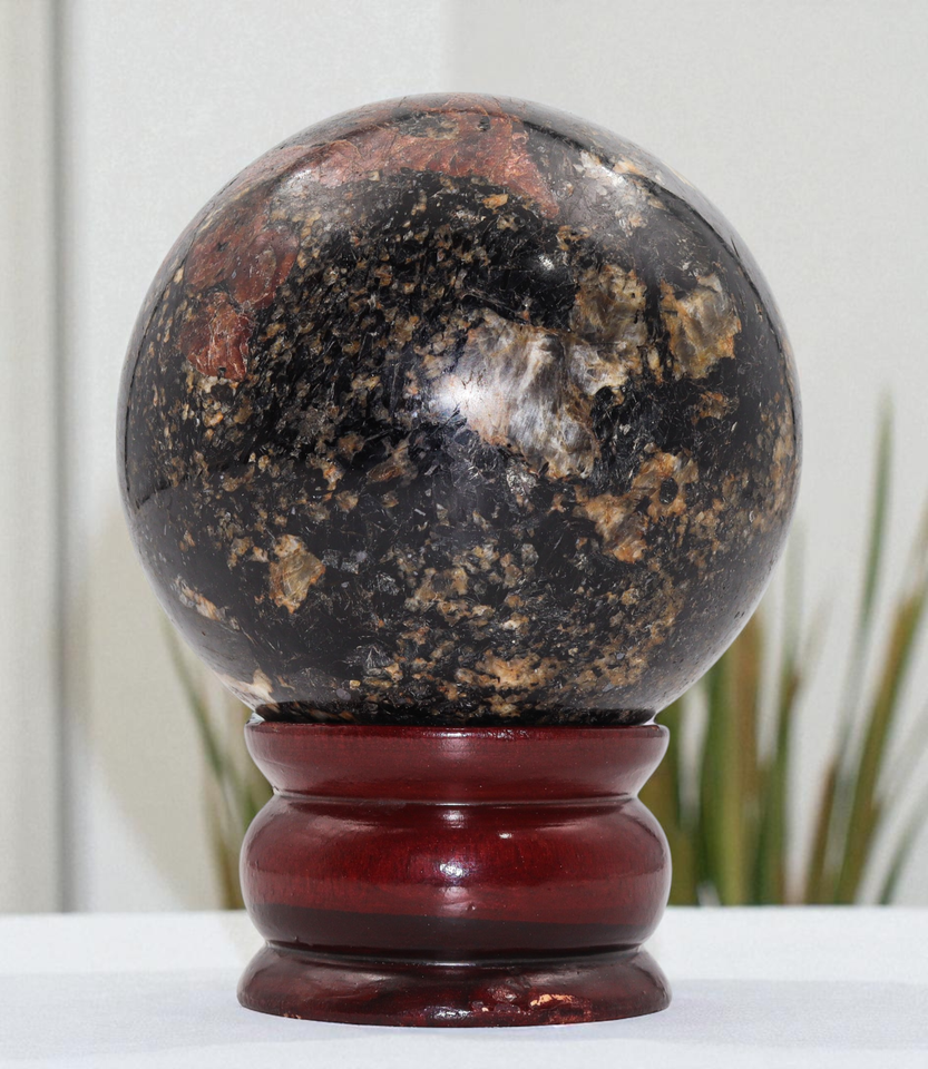 Red Garnet Astrophyllite Crystal Stone Healing Gemstone Decor Sphere Gift 85mm