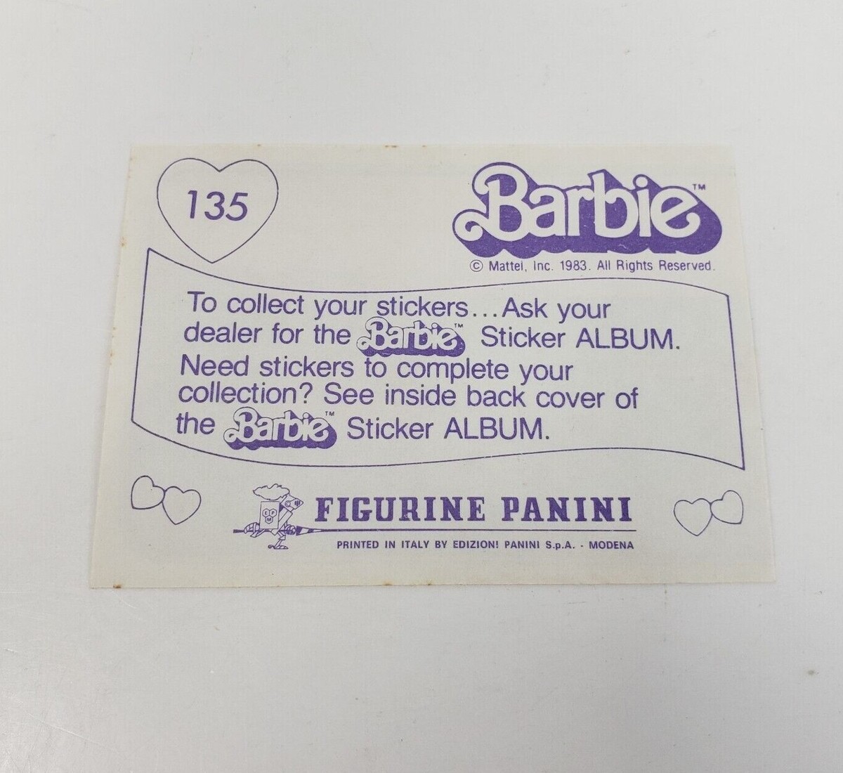 VINTAGE 1983 MATTEL FIGURINE PANINI BARBIE ALBUM STICKER NOS NEW OLD STOCK # 135