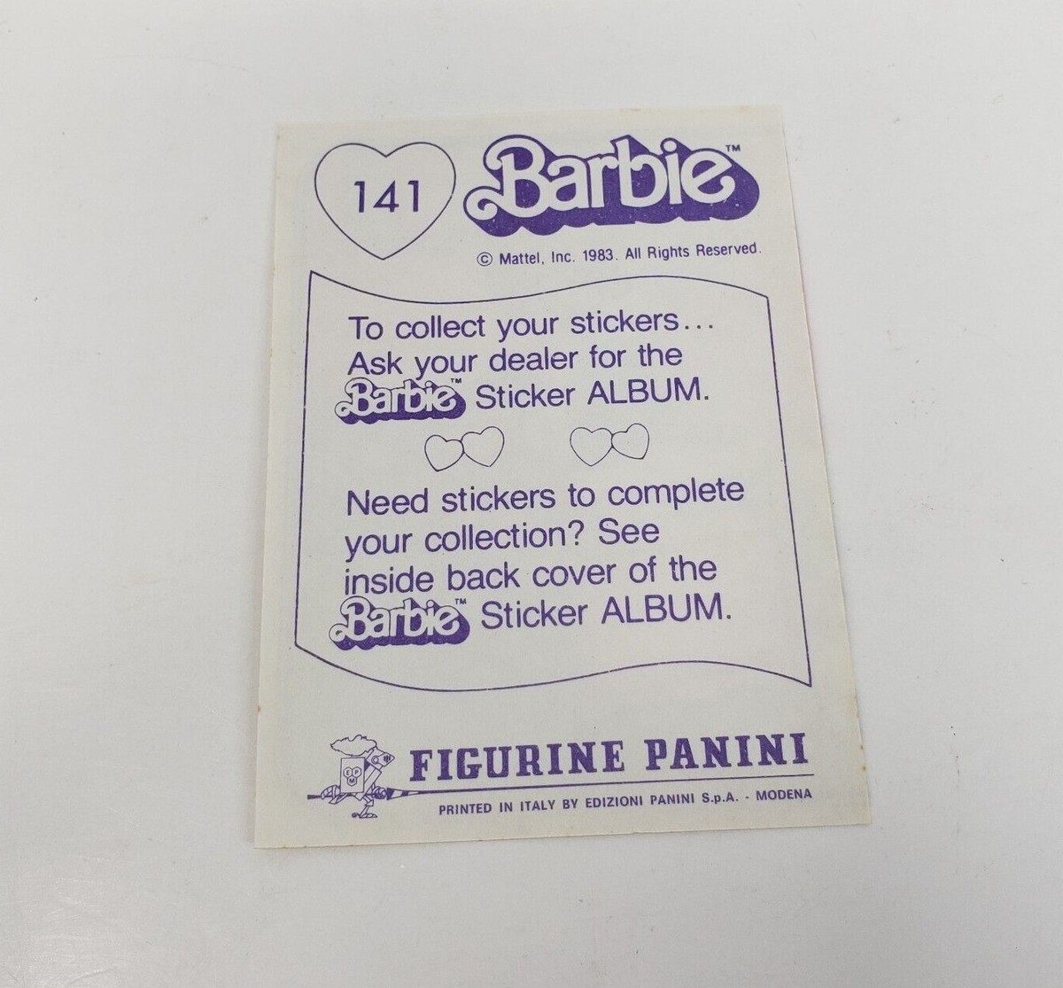 VINTAGE 1983 MATTEL FIGURINE PANINI BARBIE ALBUM STICKER NOS NEW OLD STOCK # 141