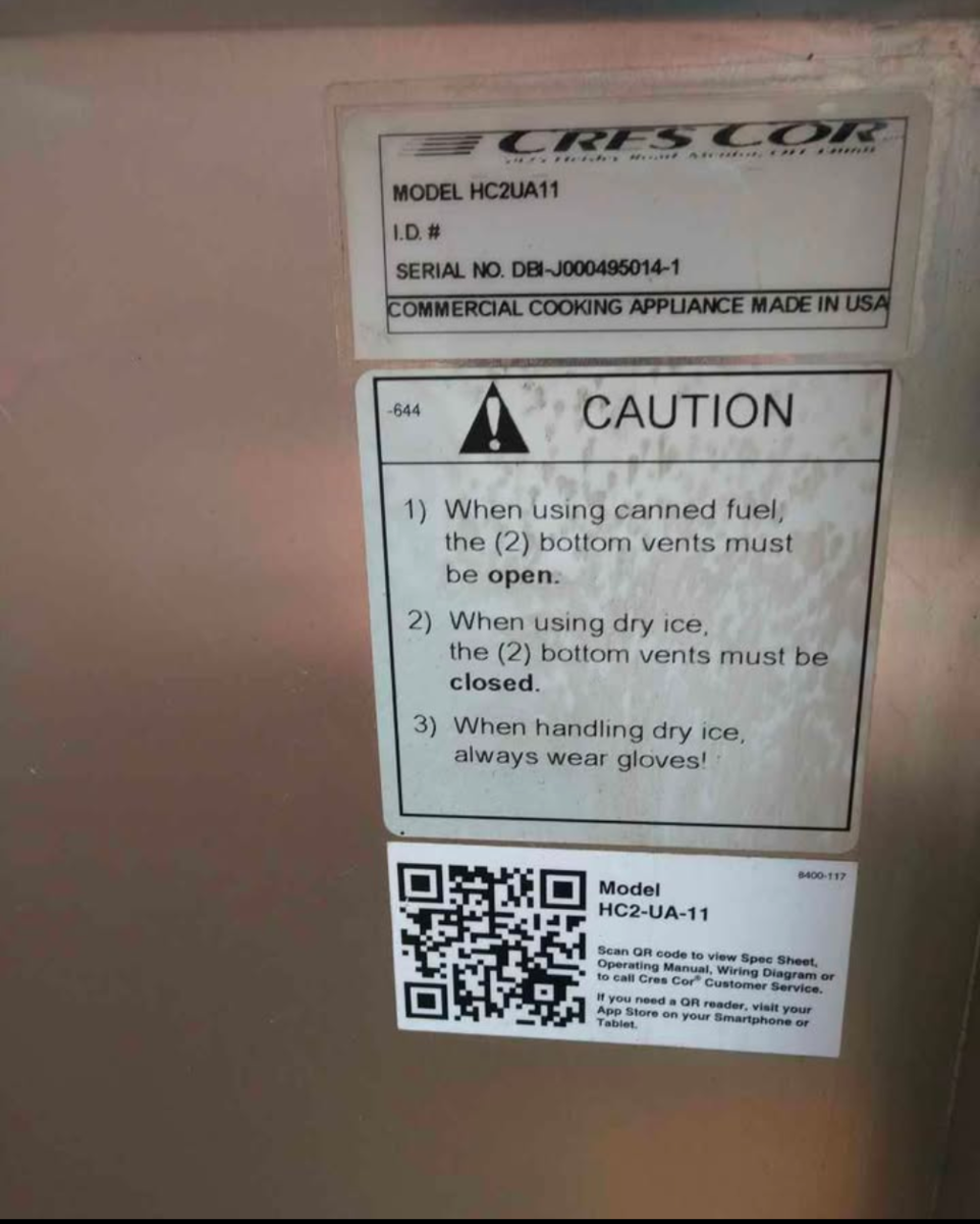 Cres Cor HC2-UA-11 3/4 Height Insulated Mobile Heated Cabinet w/ (11) Pan Capacity, Canned Fuel. This takes Sterno fuel. This is perfect for off-grid use. We can ship anywhere in the continental USA please message me with questions 419 651v3838