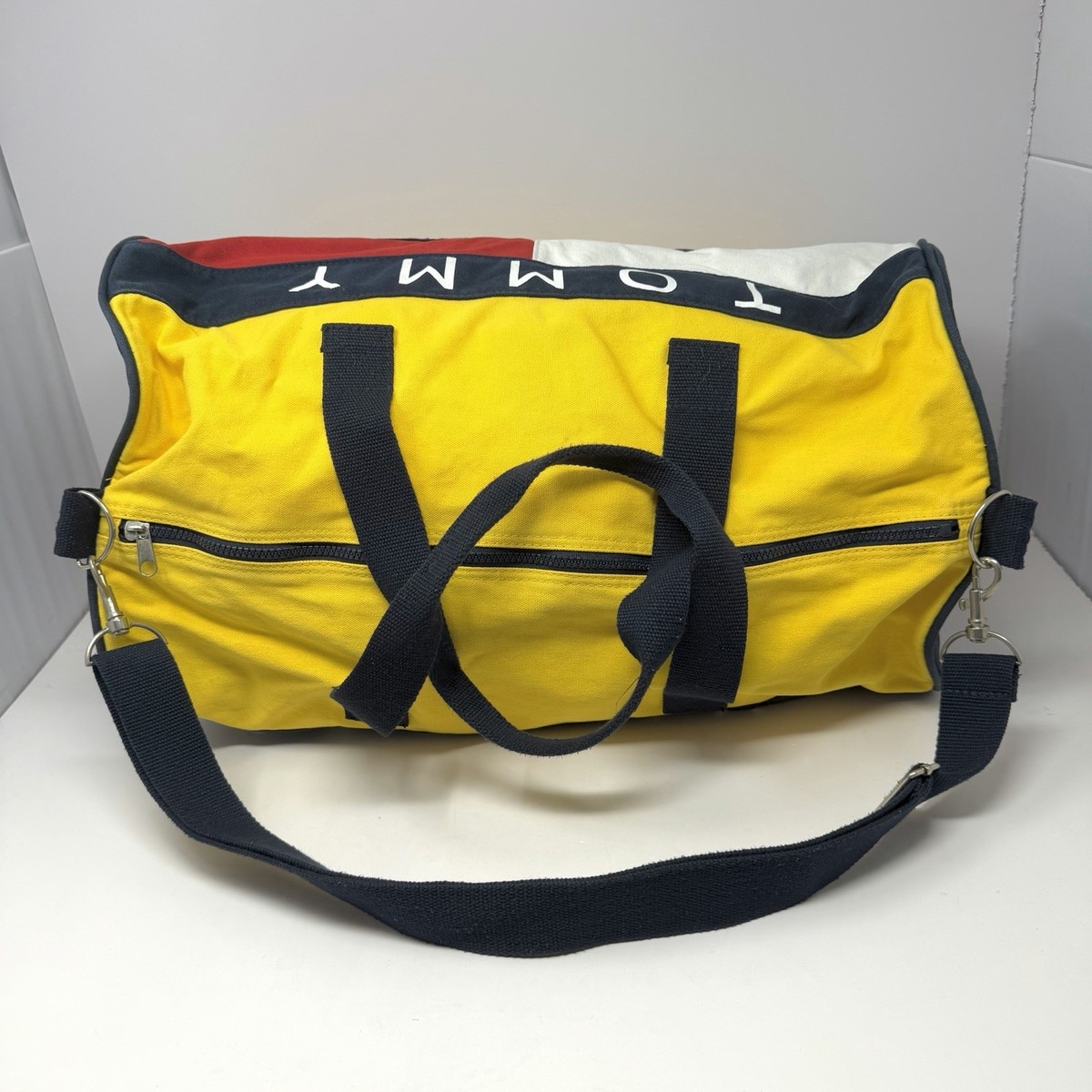 Vintage Tommy Hilfiger Duffle Bag Yellow Canvas Colorblock Iconic 90?s W/ Strap