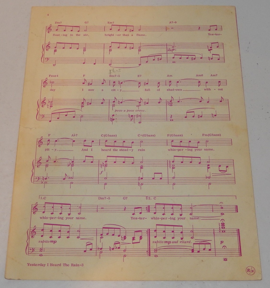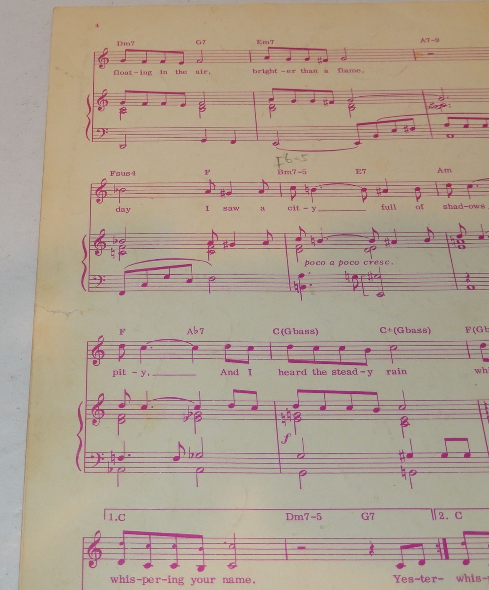 Vintage Sheet Music: "Yesterday I Heard The Rain" (Esta Tarde Vi Llover) VERY RARE and HARD TO FIND!