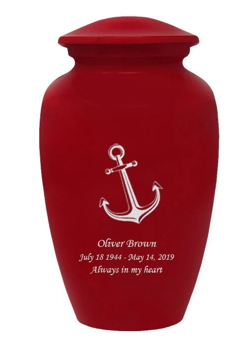 Large/Adult 200 Cu. In. Custom Engraved Red Metal Anchor Funeral Cremation Urn