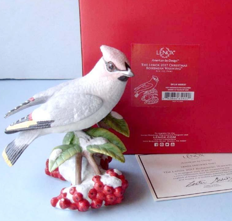 Lenox 2017 Christmas Bohemian Waxwing Bird Figurine #866697 New In Box w/COA