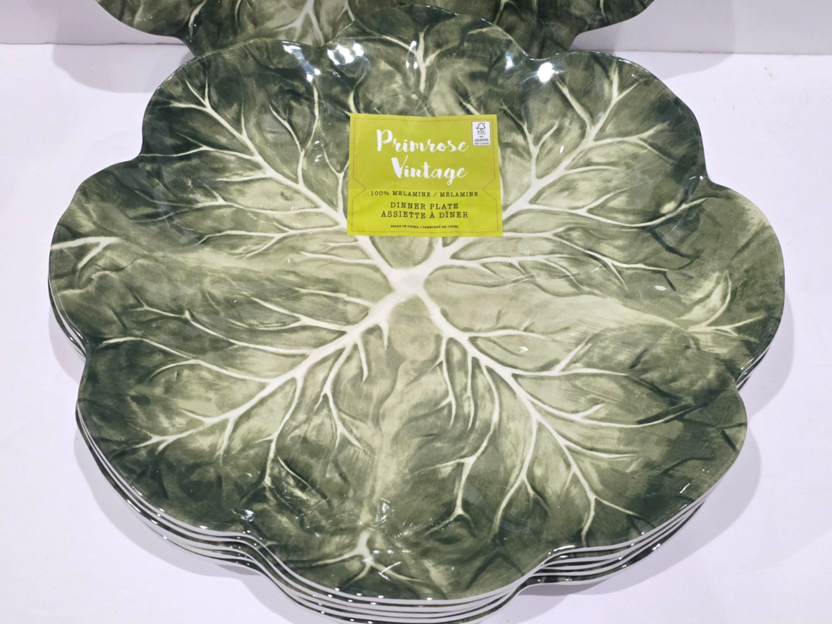 6pc Primrose Vintage Melamine Dinner Plates Green Cabbage Leaf 11โ