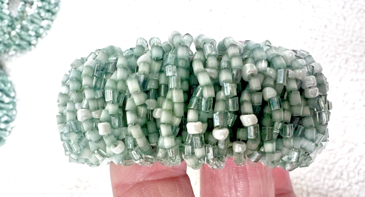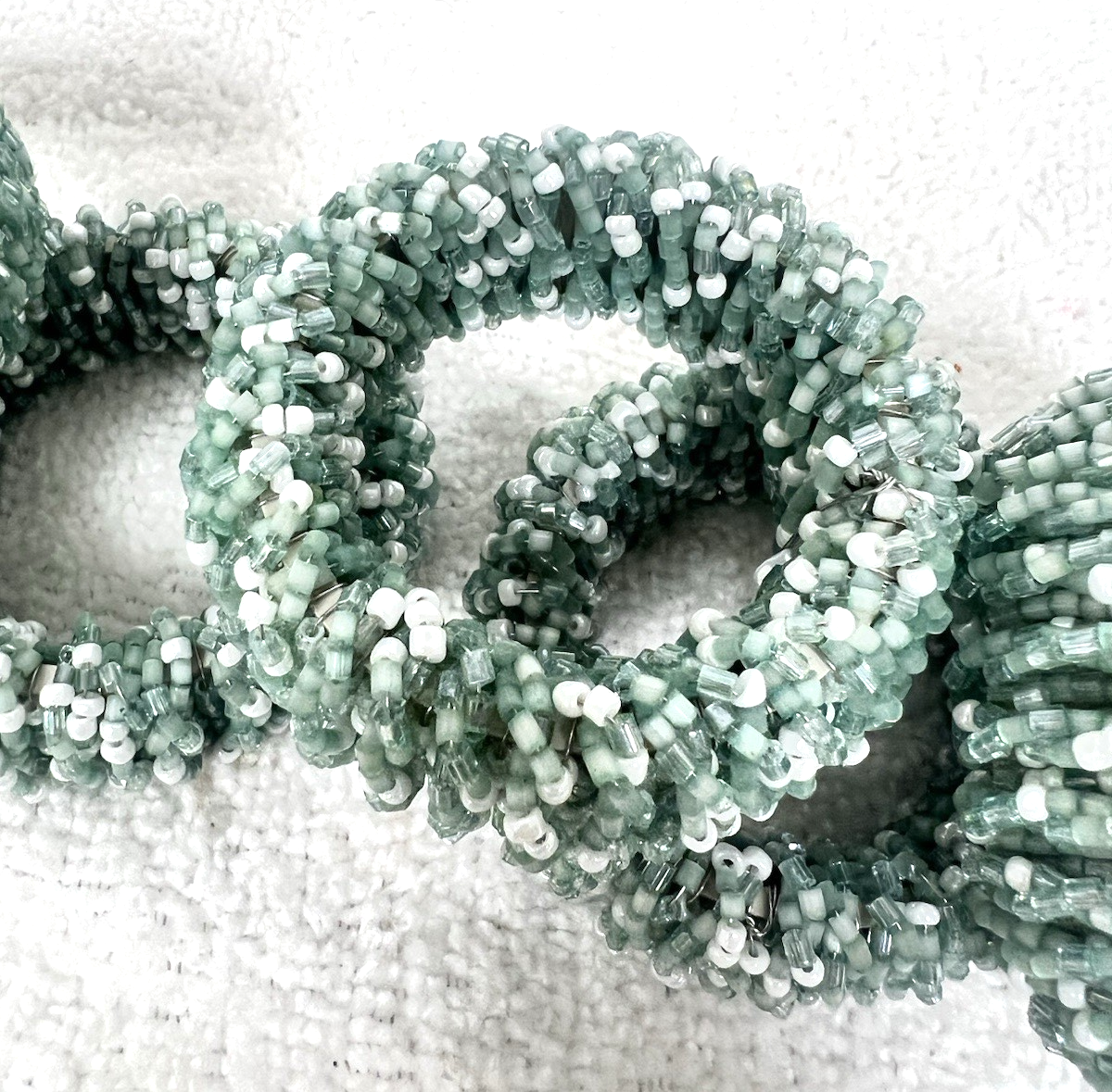 8 Sea Glass Blue Green White Beaded Napkin Rings In Great Shape Clean!