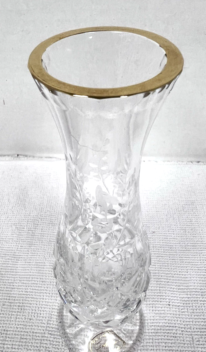 Vintage Rogaska Crystal Gallia Gold Floral Bud Vase Original Sticker Unused