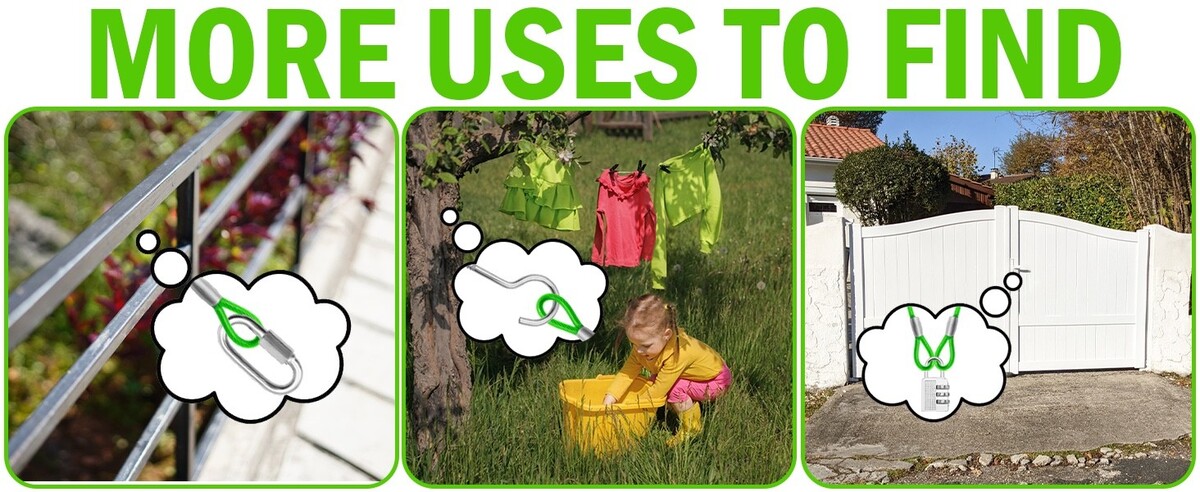 VERSATILE FUNCTIONALITY: Extends beyond basic security applications. Can serve as an outdoor clothesline or secure items like scooters, skateboards, ladders, and more.