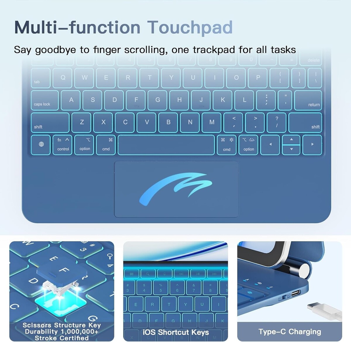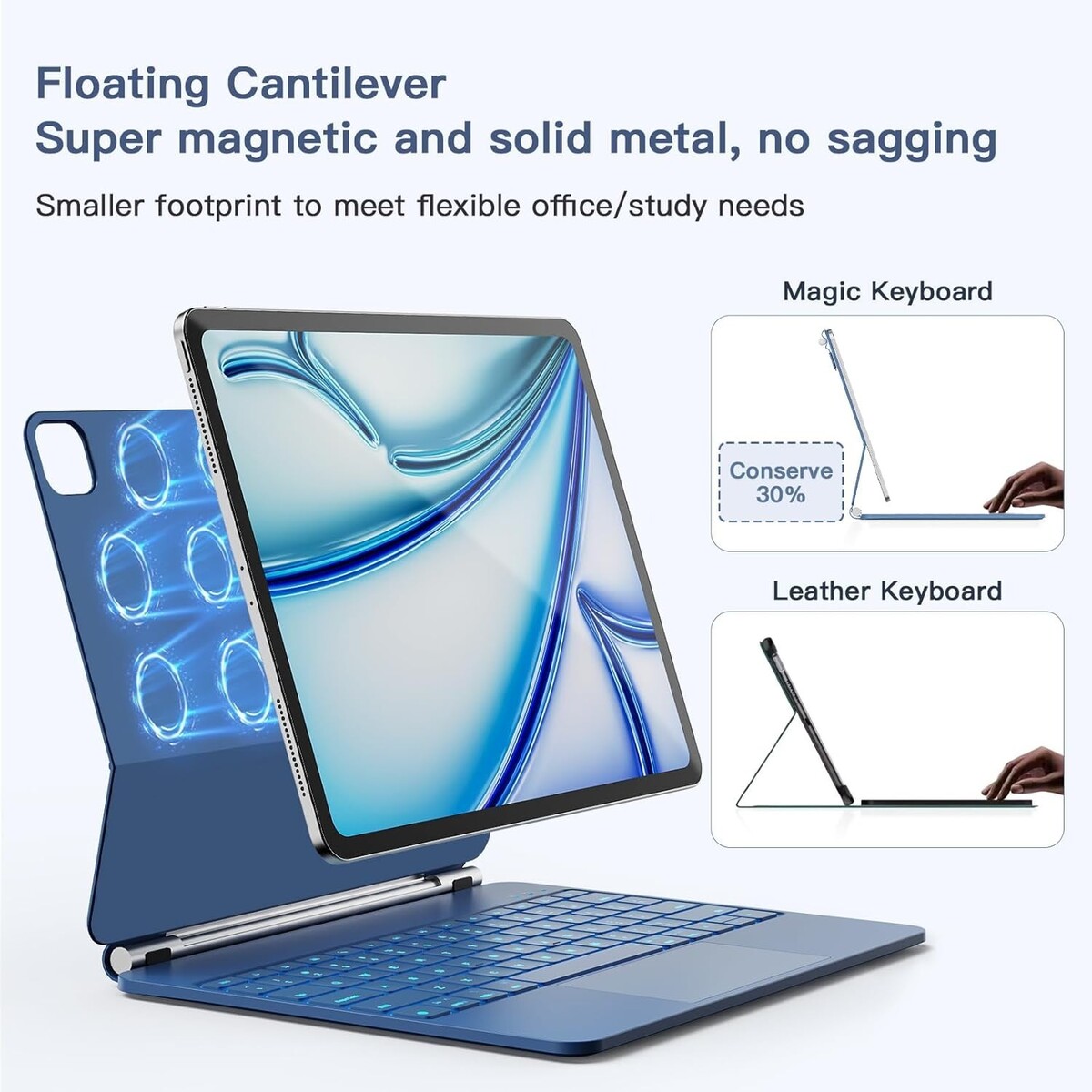 iPad Air 13 M2 M3 M4 Keyboard Case Pro 12.9 Backlit Trackpad Pencil Holder Blue