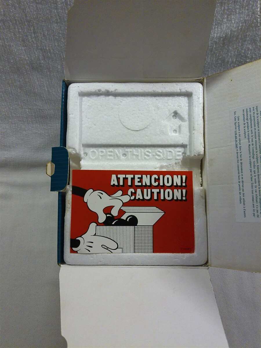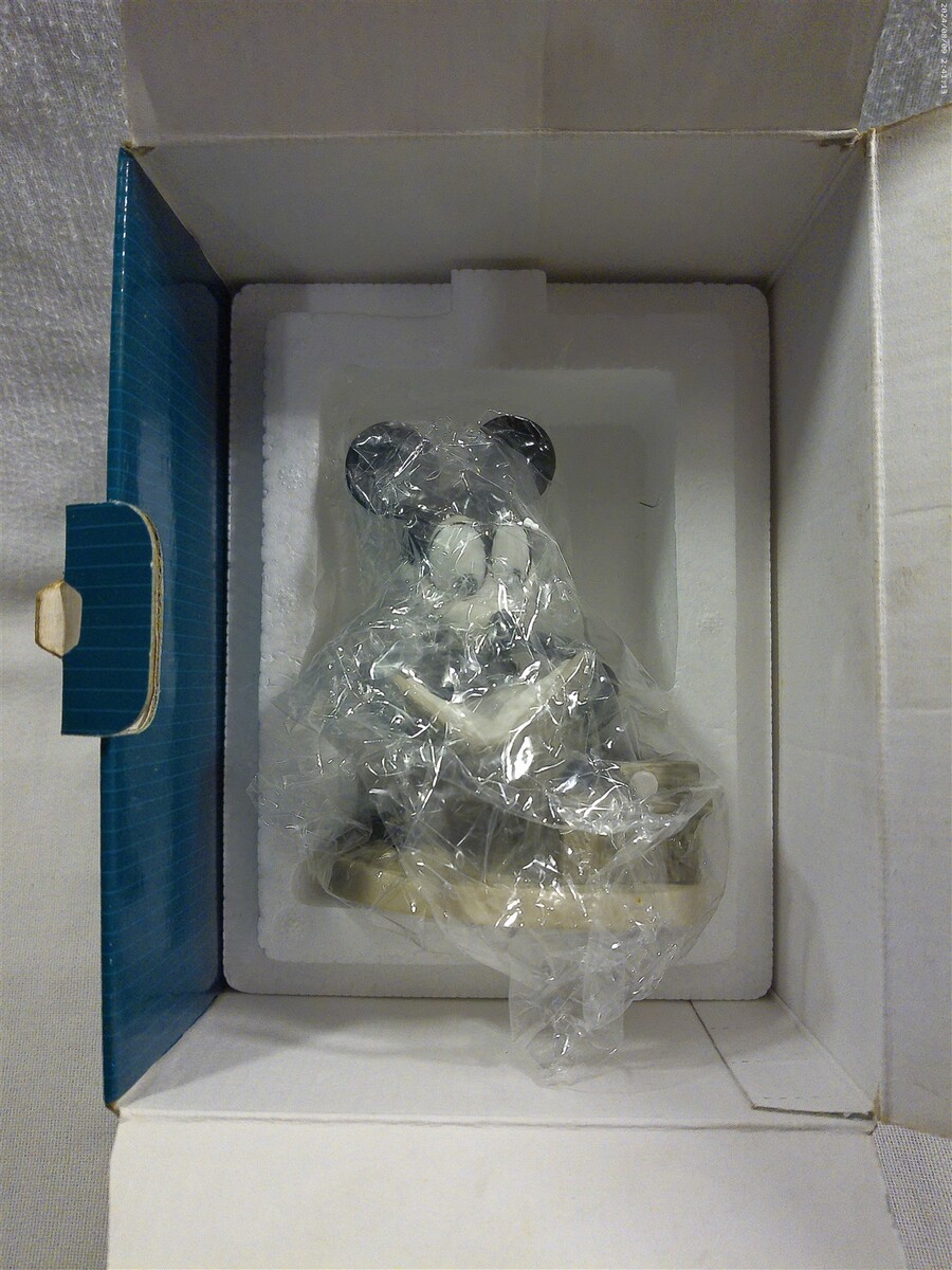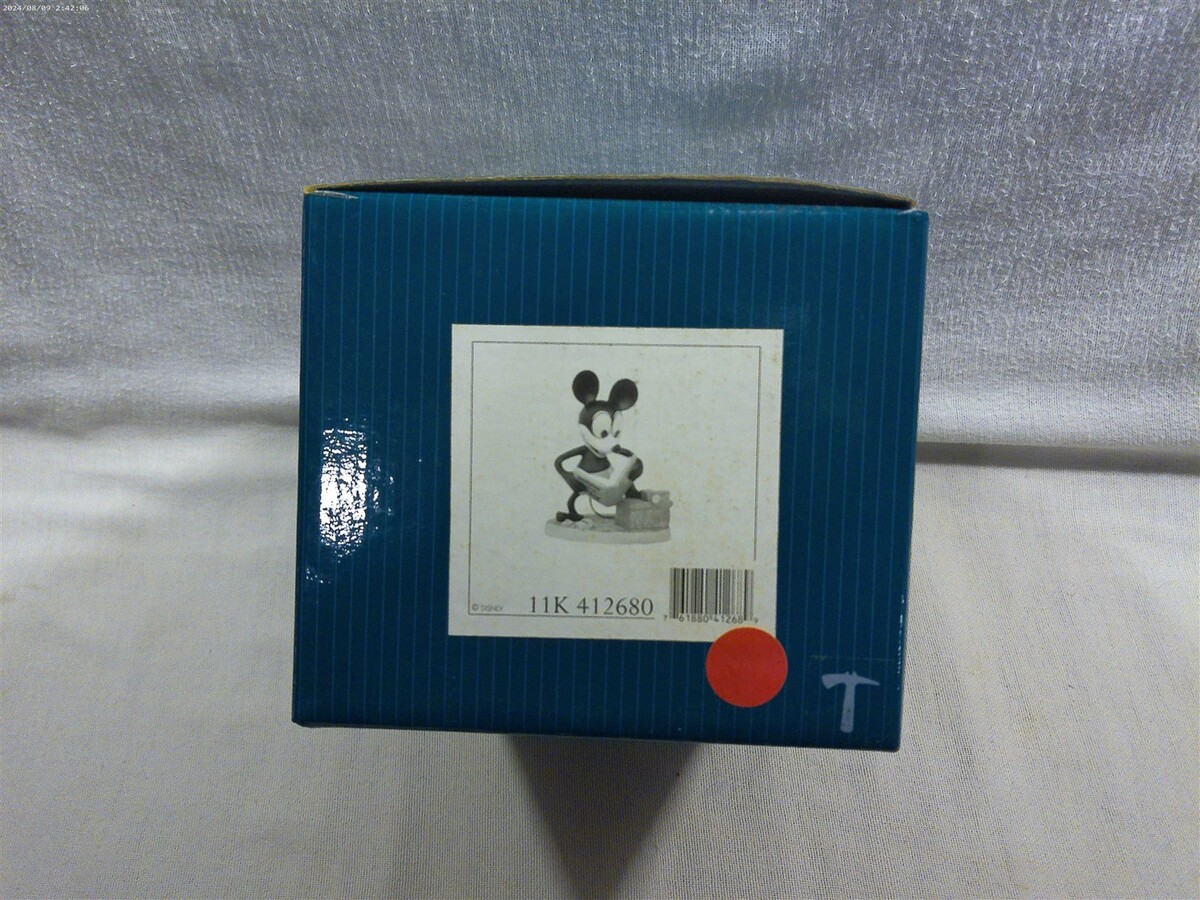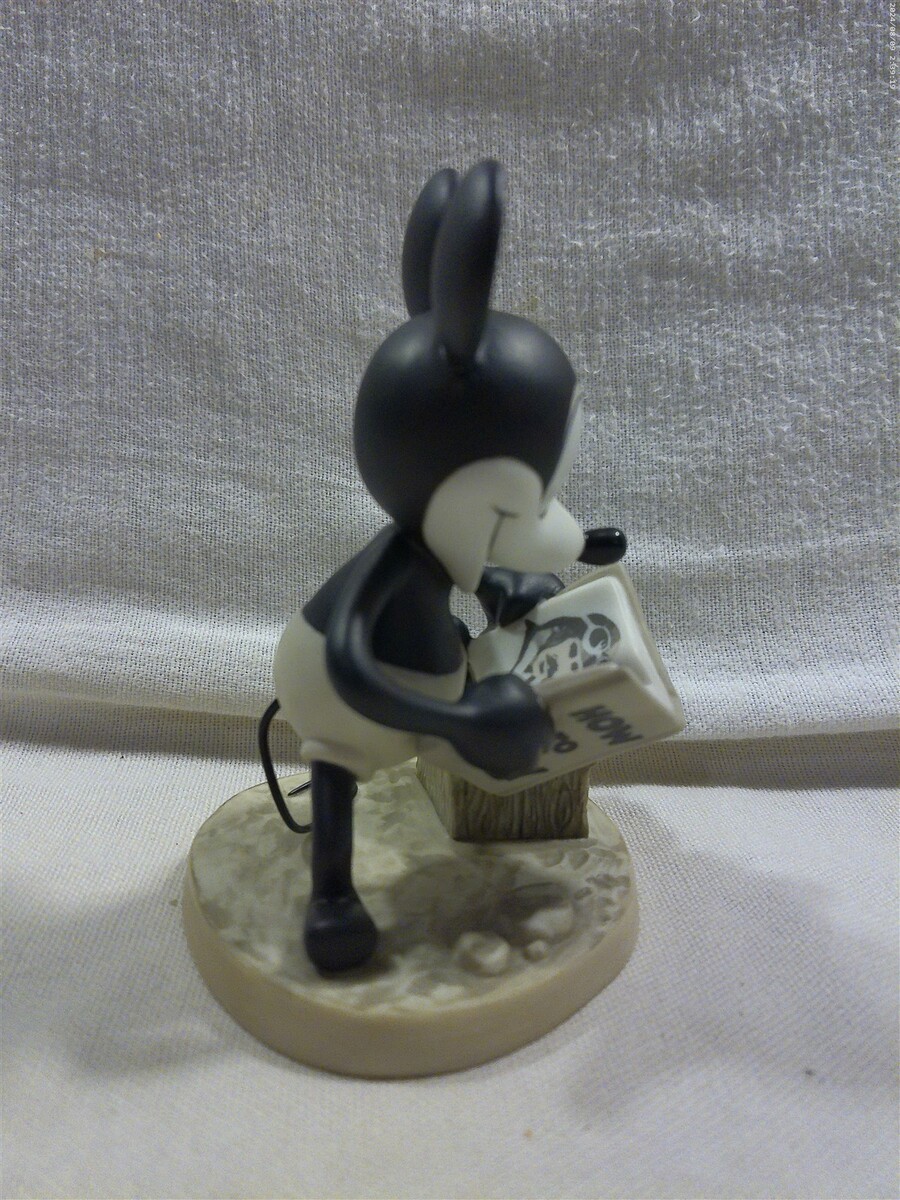 This is a Walt Disney Classics Collection (WDCC) Plane Crazy How To Fly Mickey Mouse Ceramic Figurine in original box (11K 412680). The figurine is super cute - Mickey standing reading a book entitled How To Fly. The figurine is marked on the bottom Walt Disney Classics Collection Mickey's 70th Birthday Plane Crazy How to Fly Mickey Mouse Disney. Unfortunately, the original certificate is not included in the box. The figurine measures approximately 4 1/2" tall and 3 3/4" wide - the original box measures approximately 5" tall and 7 1/2" wide. Super clean cute Walt Disney Classics Collection How to Fly Mickey Mouse ceramic figurine in original box that displays absolutely great when sitting on a shelf!