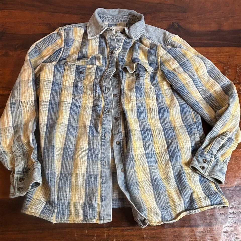 Cleo + Wolf Shacket Womens M Plaid Flannel Snap Front Denim Yoke Western
