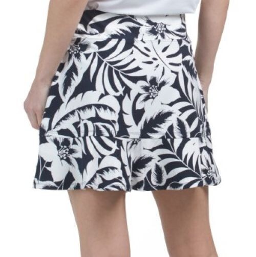 NWT - New With Tags Womens Ladies TOMMY BAHAMA ISLAND LEAVES NAVY BLUE WHITE Golf Tennis Pickleball Ruffle Hem Knit Skort - sizes Small, Medium, Large XL (see measurements)